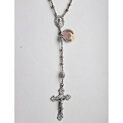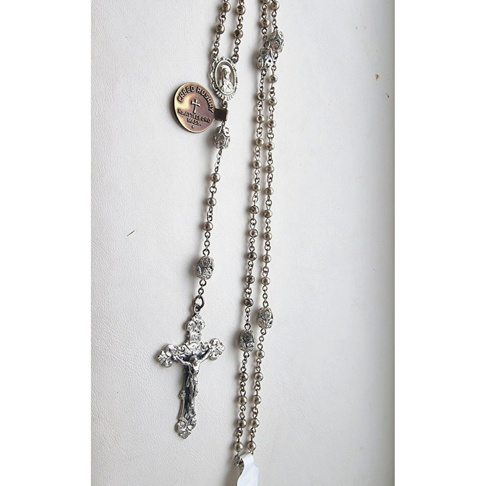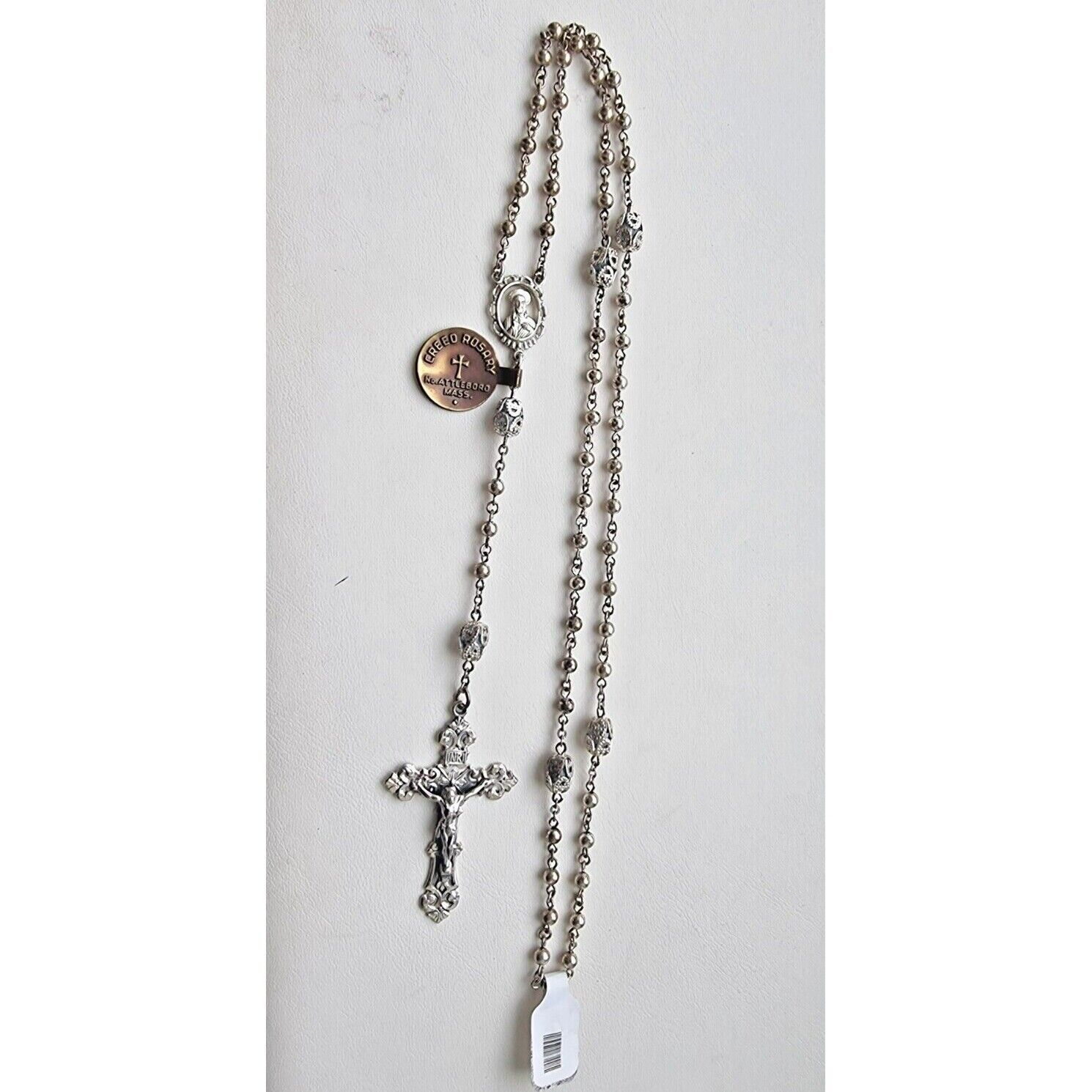 SIZE: APPROX '' x '' WEIGHT: 22.9 GRAMBEATIFUL GIFT BOX INCLUDED!!! This exquisite necklace from Creed is a timeless piece that features a classic Catholic rosary with a crucifixion. Crafted from high-quality 925 sterling silver, this necklace is designed to last for years to come. The necklace is beaded and has a beautiful cross-shaped pendant that adds a touch of religious elegance to any outfit.