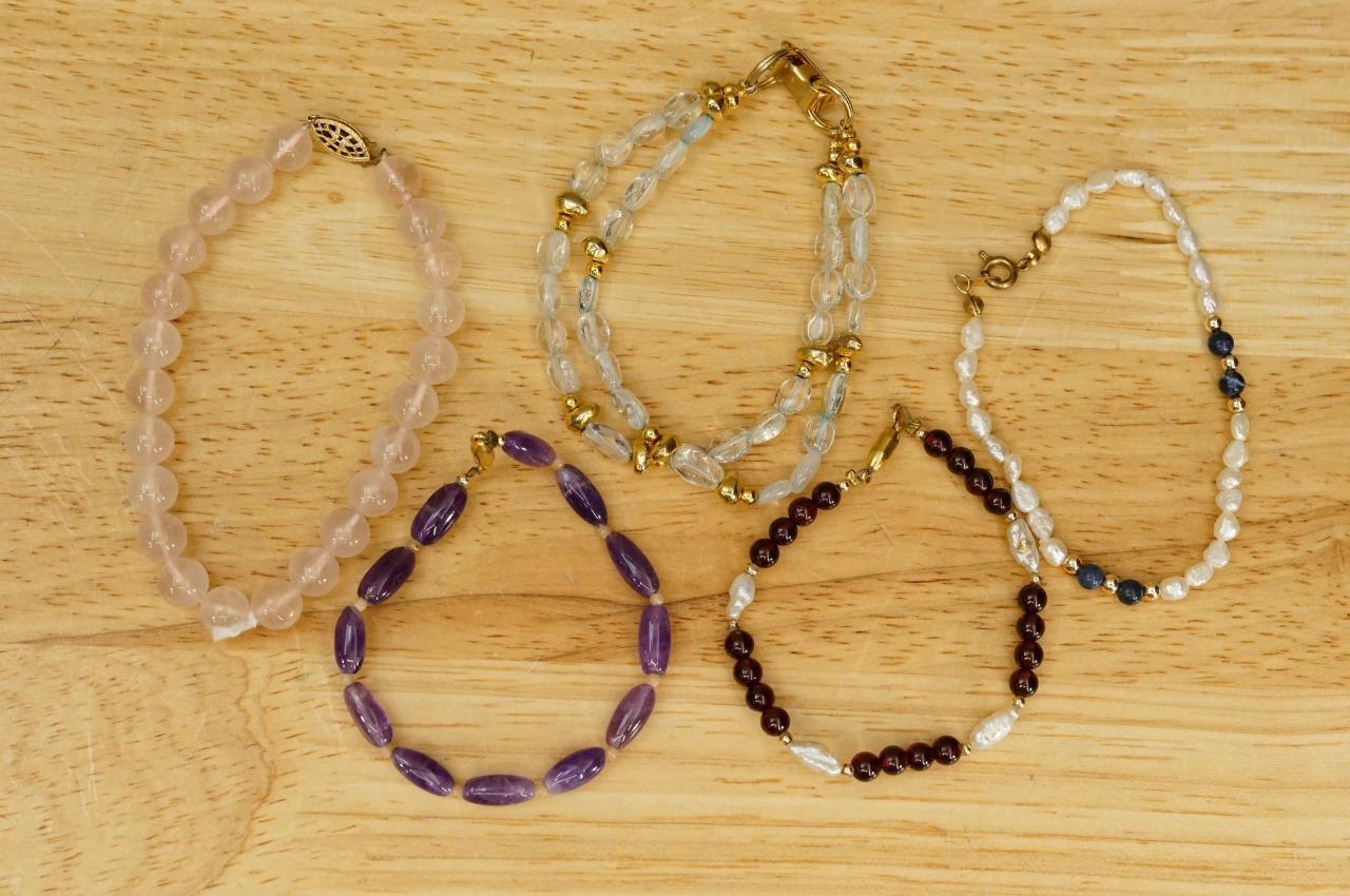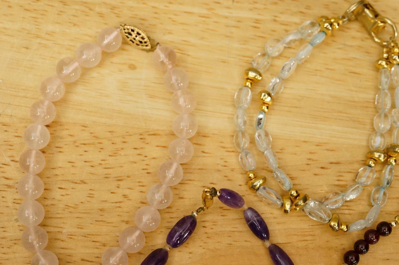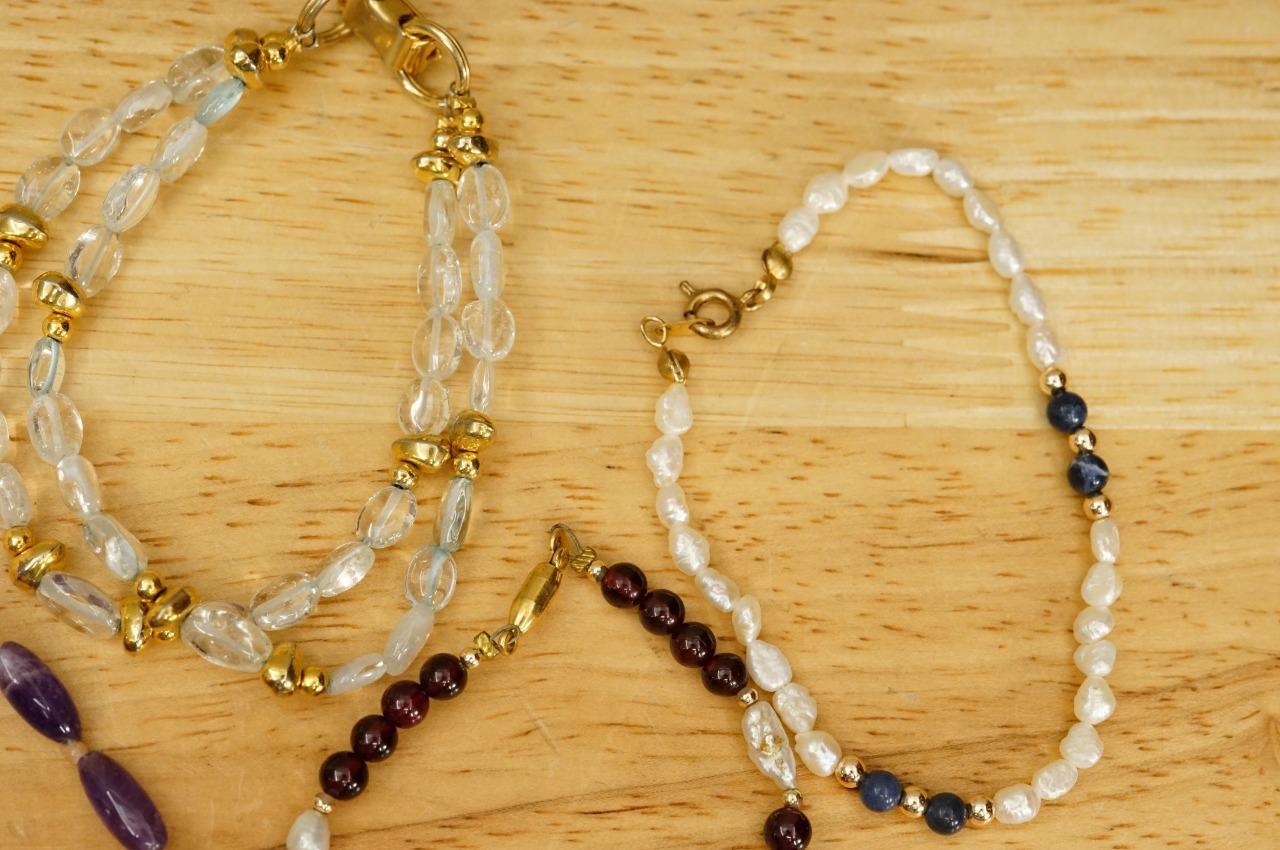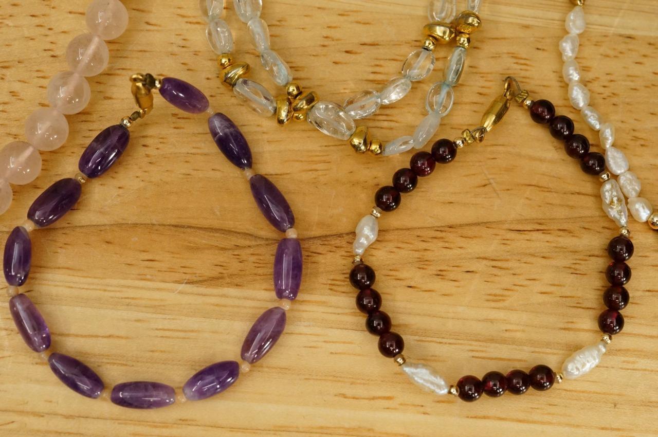 Artisan Costume Jewelry Lot Semiprecious Gemstone Garnet, Pearl, Quartz, Amethyst, Aquamarine Bracelets. 5-7" long. Wear as they are or use the stones in your own creations. No smoke or pet odor.