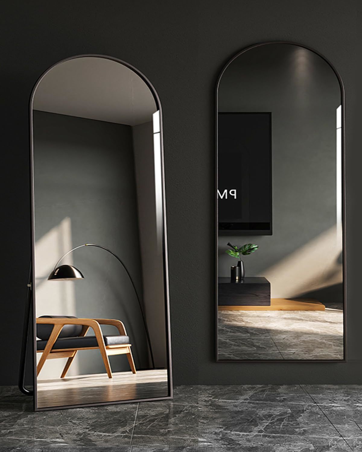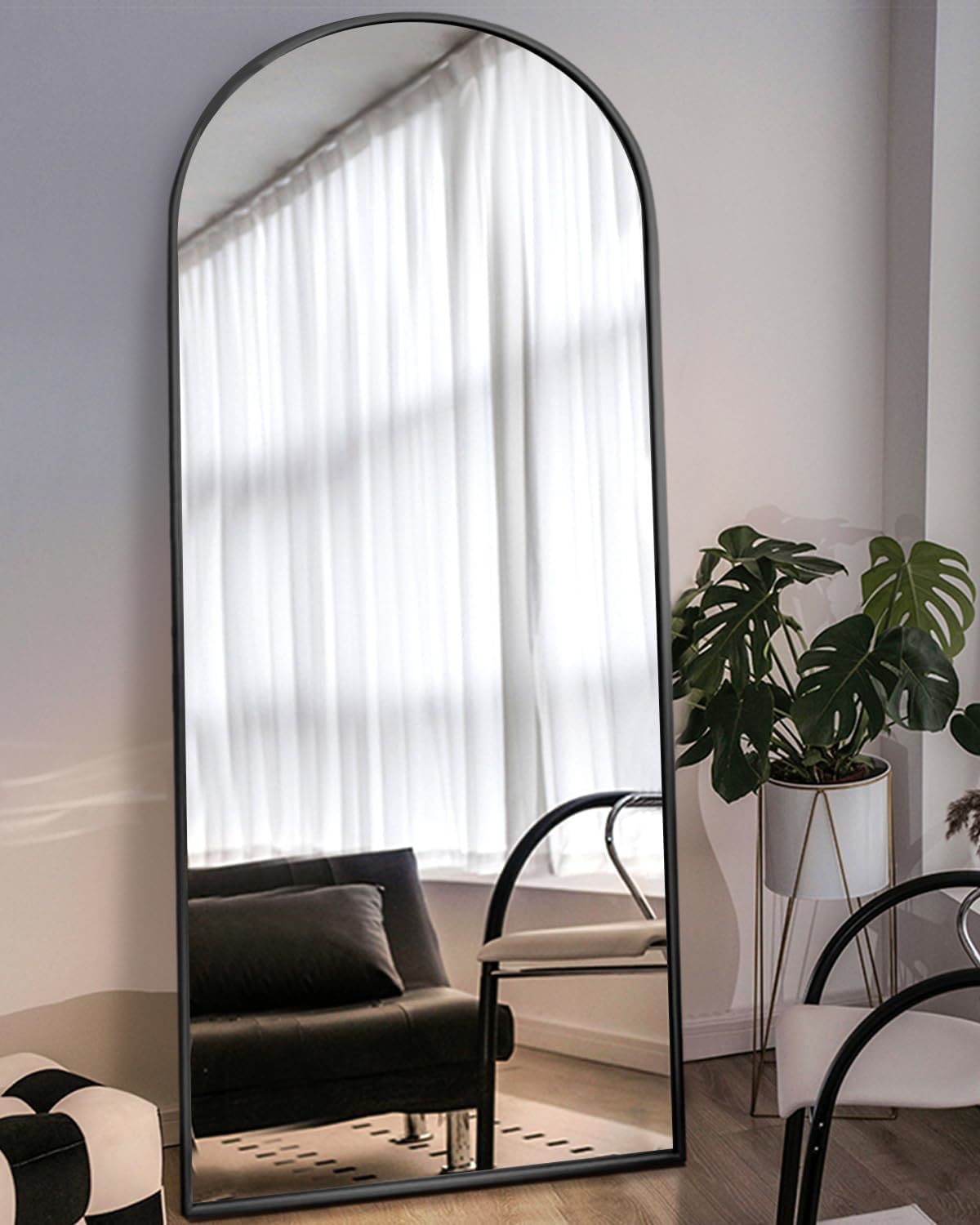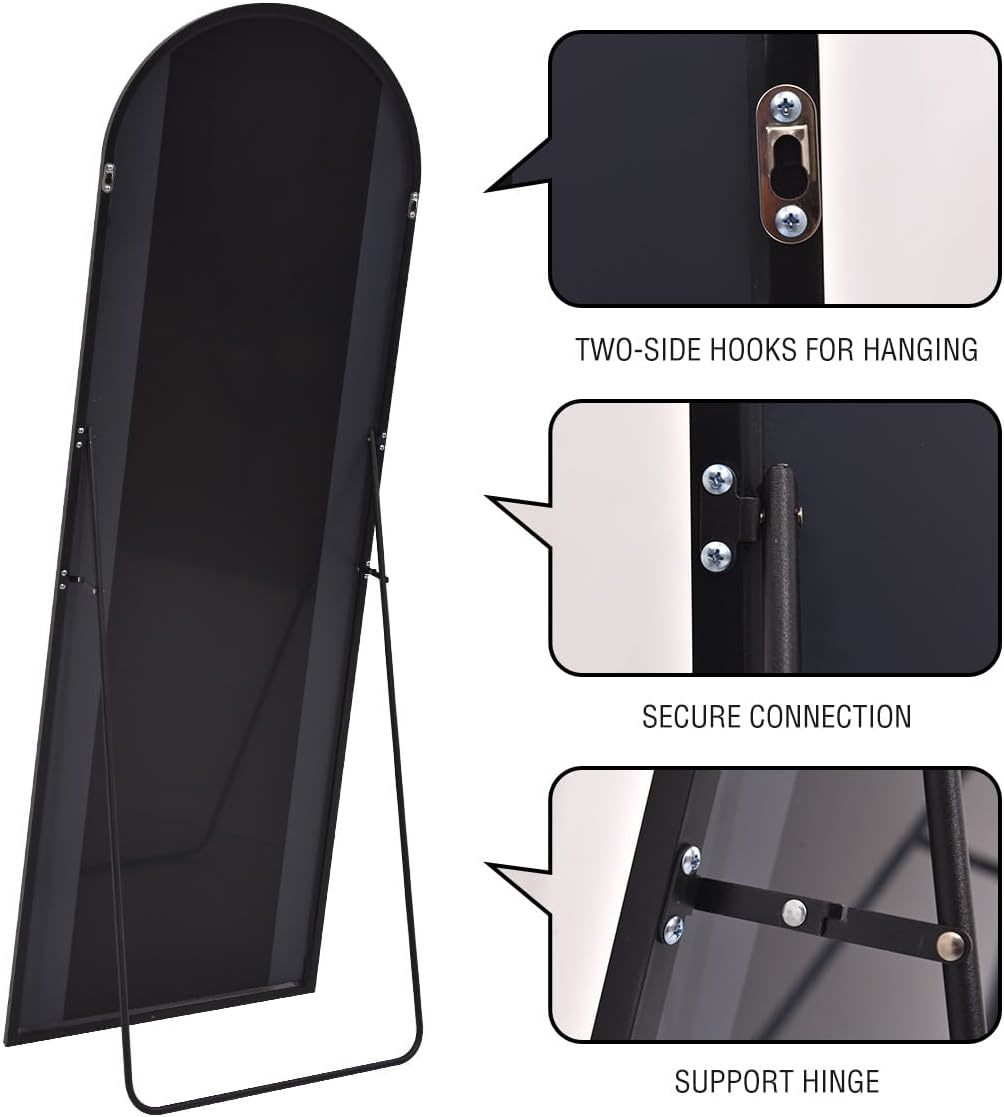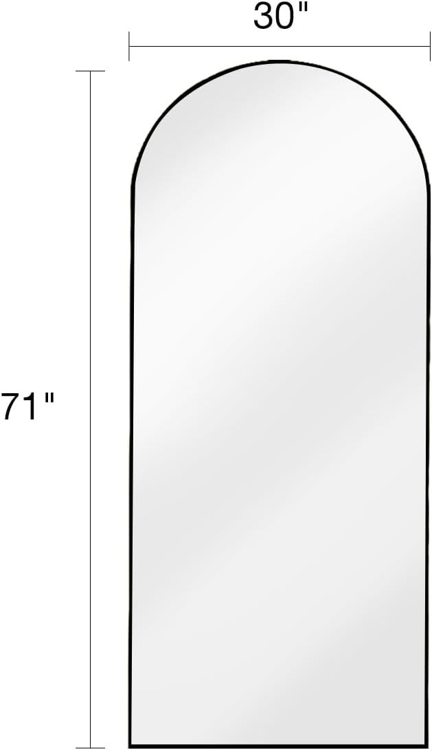 ??FULL SIZE? The size of the mirror is 30"x71". The full length wall mirror not only facilitates you to admire the whole body, but also makes your space more beautiful. ??DESIGN?The top of the floor mirror is designed with a unique smooth arched-top frame. The thin aluminum alloy frame makes the mirror looks more classic and it is very conspicuous in any space and makes your room look classy. ??HD imaging? Custom glass, the use of explosion-proof materials, rust-proof and durable, such as accidental damage, the mirror glass will not be scattered all over the place to ensure your safety! ??MULTIFUNCTIONAL?The full-length mirror can be tilted to the wall or installed vertically on the wall. You can also open the U-shaped bracket and stand it anywhere. The hook on the back is suitable for almost all places indoors or outdoors. ??Guarantee? Our aim is to provide high quality products at reasonable prices. We assure you of your satisfaction. We have full confidence in our products. If you have any questions or concerns, we are here to help you promptly.