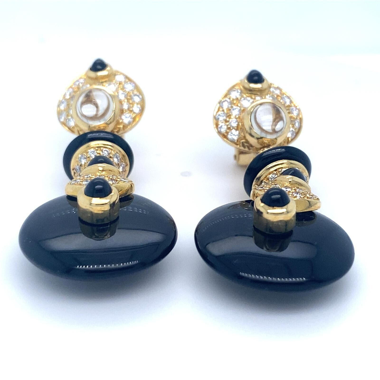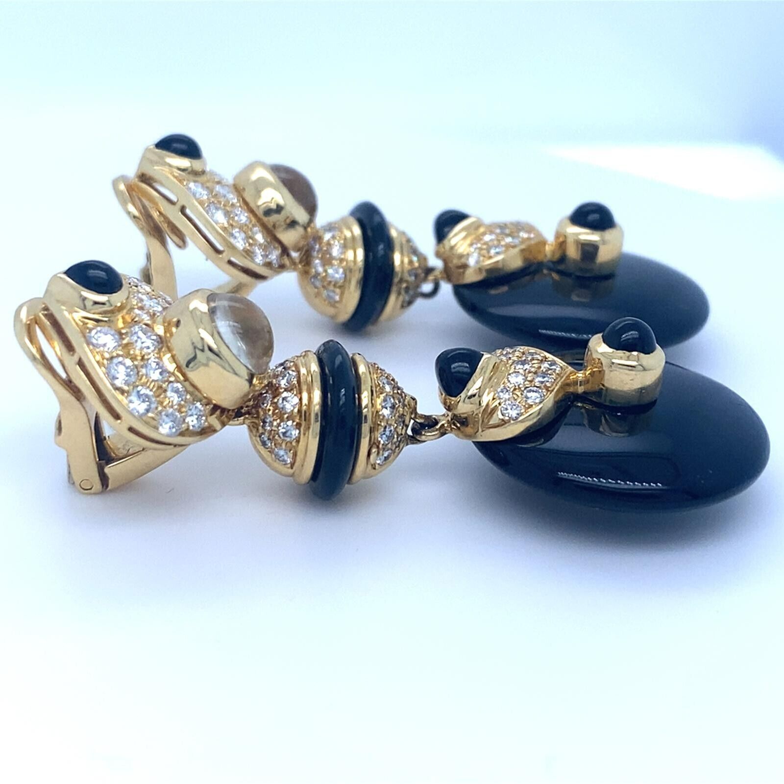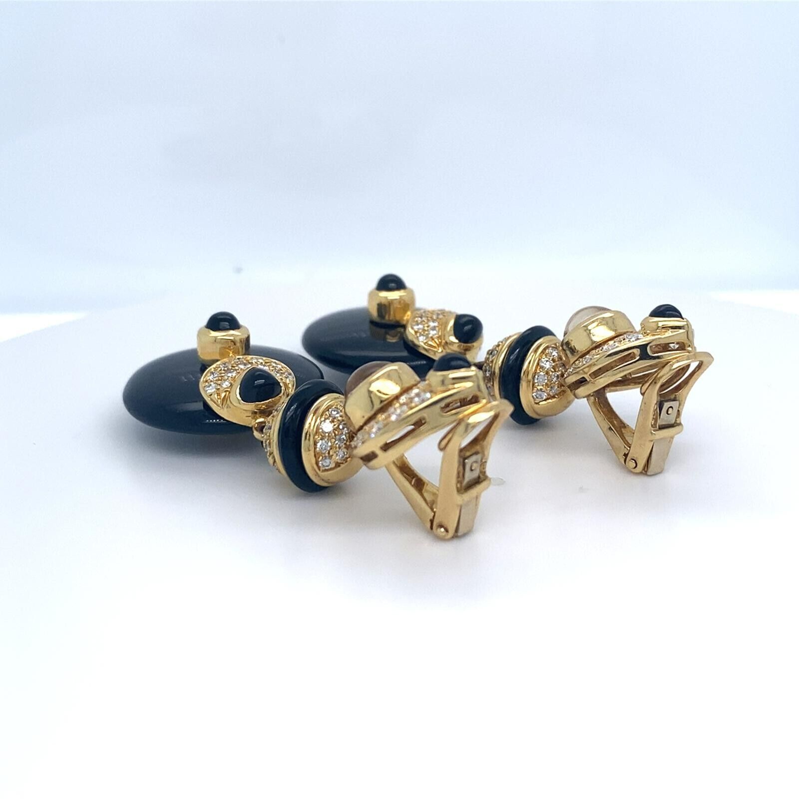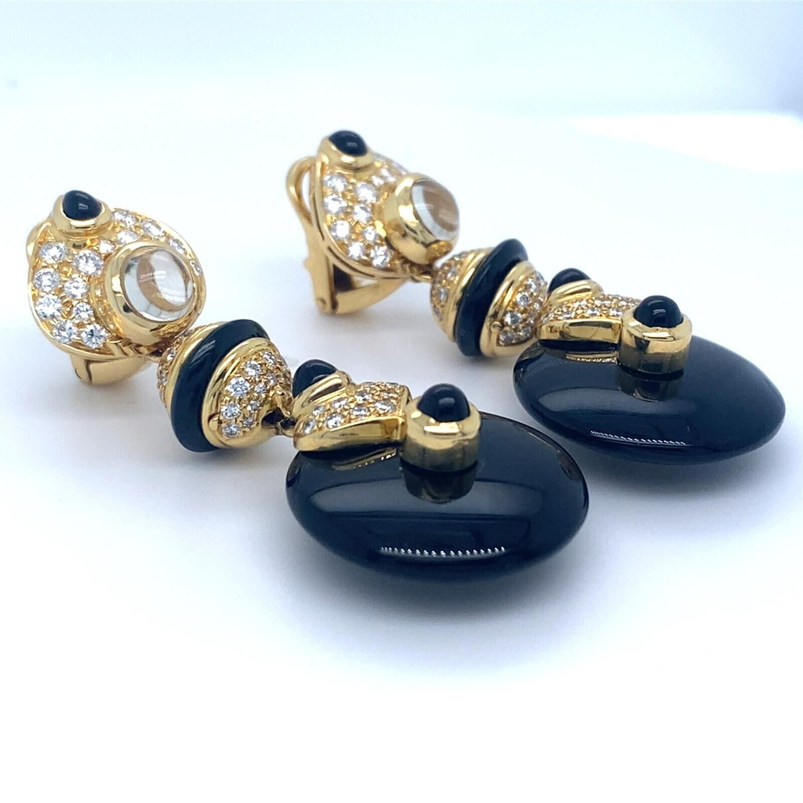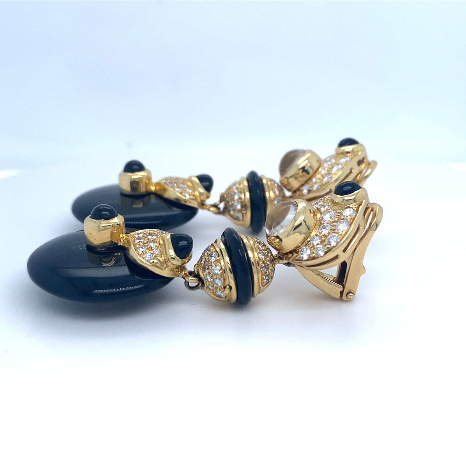 18k Yellow Gold Black Onyx, Moonstone, and 1.66 ct Diamond Earrings 2" 33.3 grams