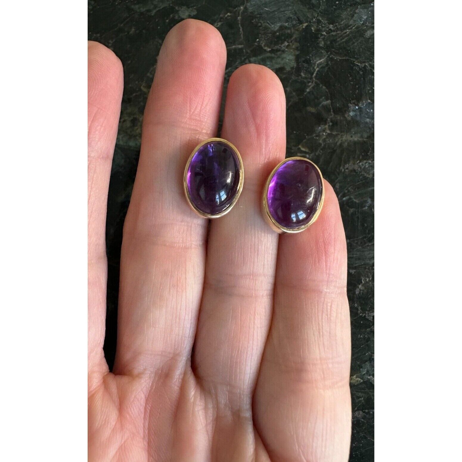 14K YELLOW GOLD AMETHYST EAR STUDS EARRINGS SKY