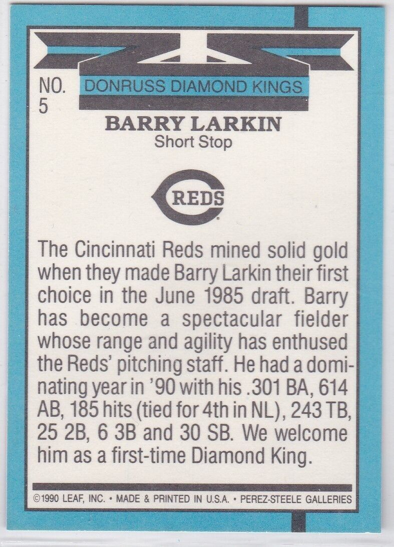 M) 1991 Donruss Baseball Trading Card - Barry Larkin #5