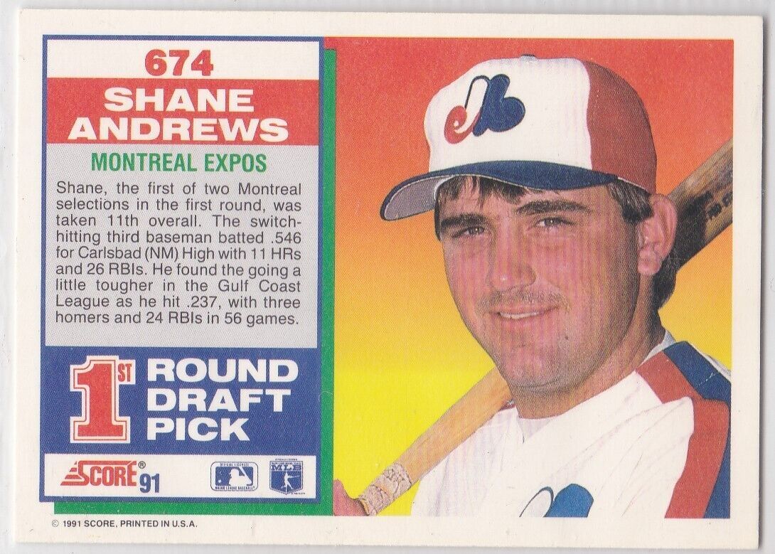 M) 1991 Score Baseball Trading Card - 1st Round Draft Pick - Shane Andrews #674