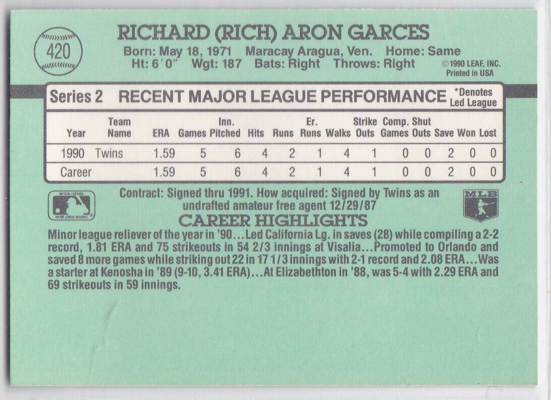 M) 1991 Donruss Baseball Trading Card - Rich Garces #420