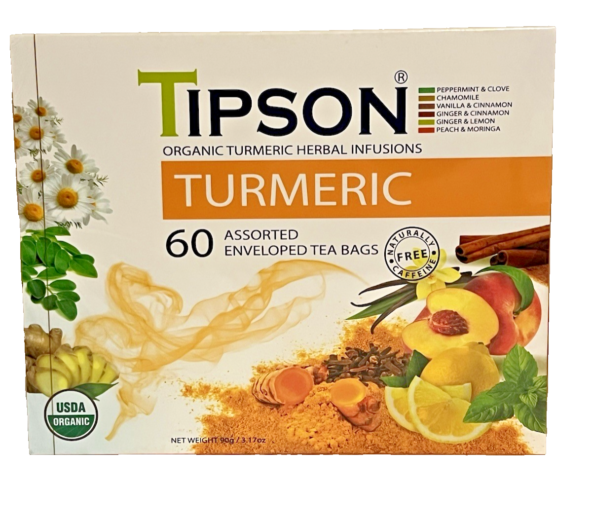 Tipson Organic Turmeric Variety Sampler - 6 Flavors (60 Tea Bags), Herbal Tea...