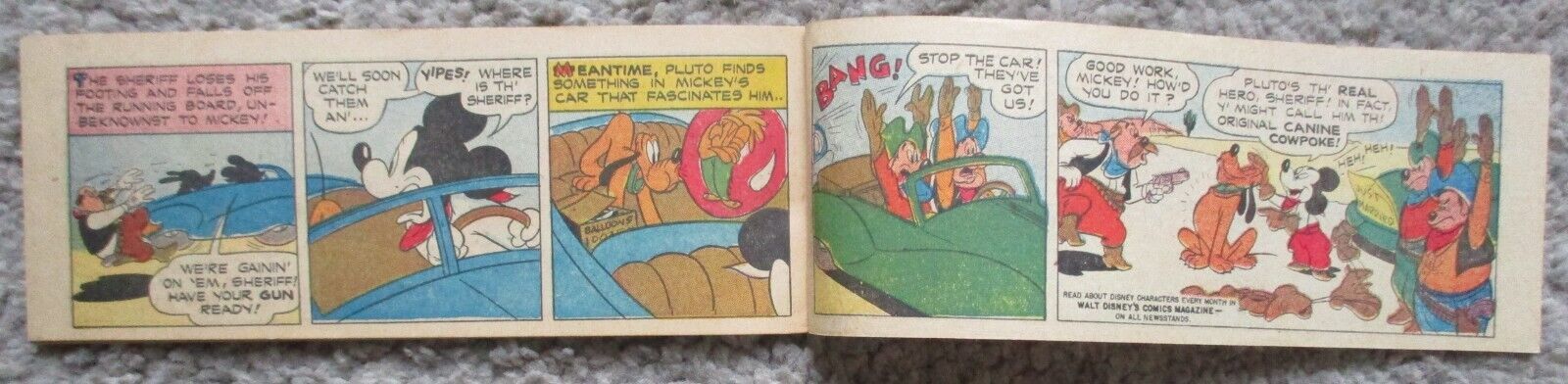 Pages consist of 1-3 panels each. Mickey and Pluto vacation at a dude ranch that is plagued by bandits.