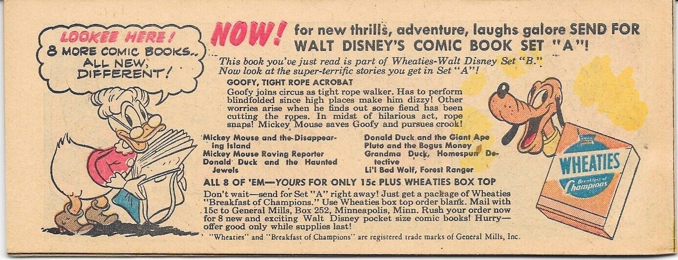 1950 Wheaties cereal 32-page promotional comic, measures 2-5/8" x 6-7/8", Walt Disney Productions