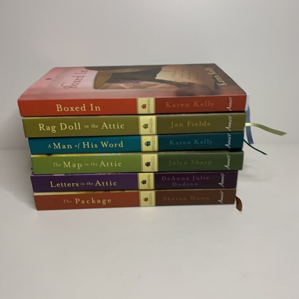 This lot of Annie's Attic Mysteries series includes six books: Boxed In, The Key in the Attic, Rag Doll in the Attic, and others. Each book is a hardcover with a dust jacket and is in very good condition. The books are written in English by various authors and published by Annie's Attic.