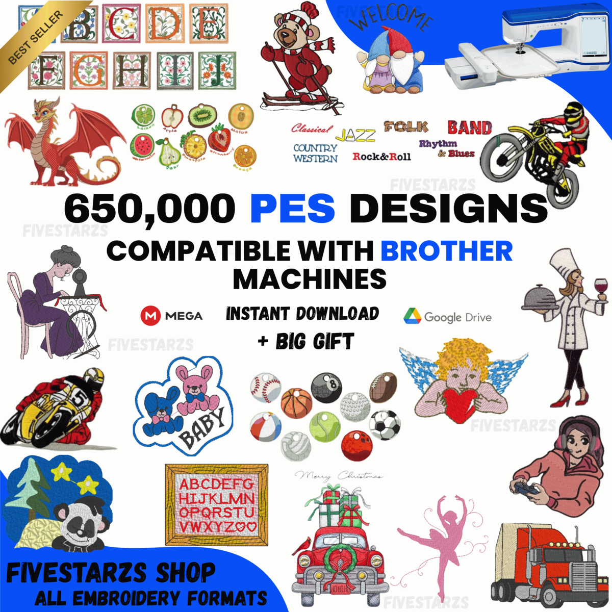 Machine Embroidery Designs for Brother 650,000 files PES format Instant Download