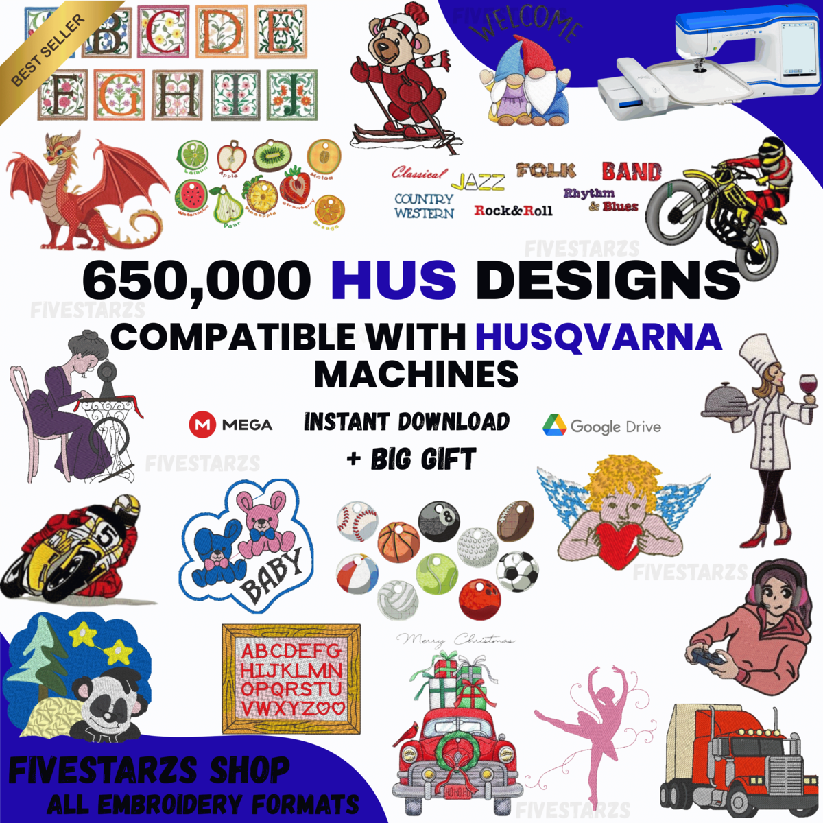 Machine Embroidery Designs for Husqvarna 650,000 Files HUS Format Fast Download.
