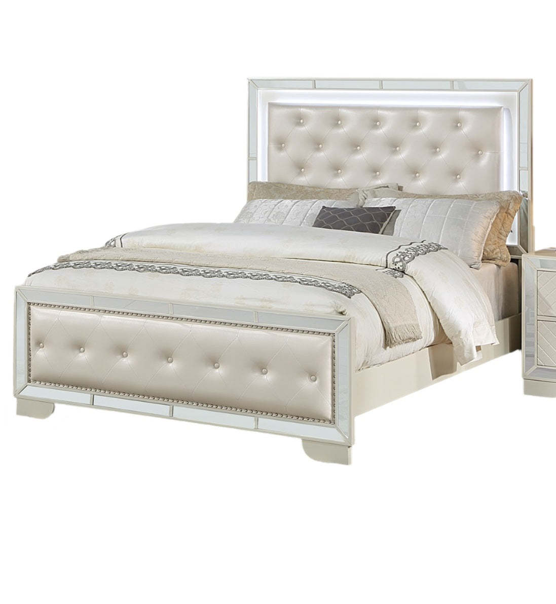 Queen Bed Frame: Ivory Tufted Faux Leather and 44 similar items