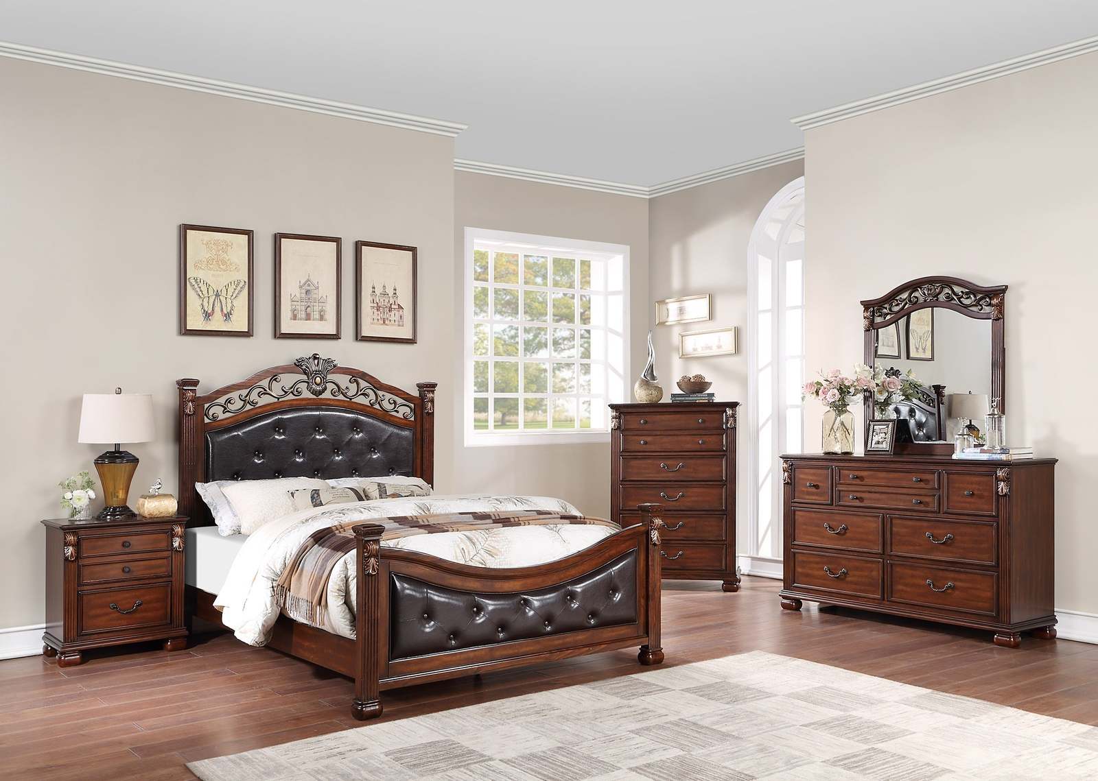 Classic molding with the well crafted finishing that creates a lasting style for this bed frame. The bed headboard consists American traditional style with a sense of delicacy and proper look, and it has the options for queen, California king, and Eastern king sizes. With the craftsmanship that goes into this bed, it brings the best quality into your bedroom. Comes with nightstand, mirror , dresser, and chest that matches perfectly with the bed. A master bedroom set that complete your f
