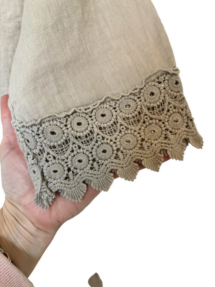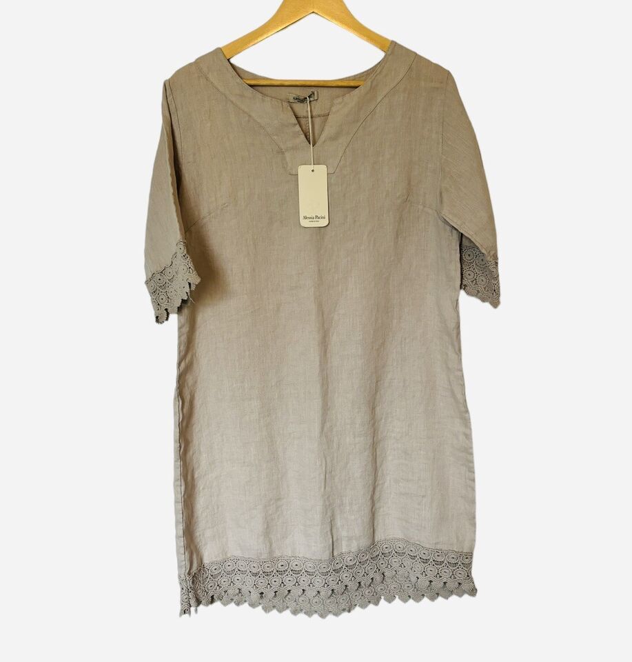 NWT Alessia Pacini Linen Mini Shift Tunic Dress Sand Italy Medium Lace