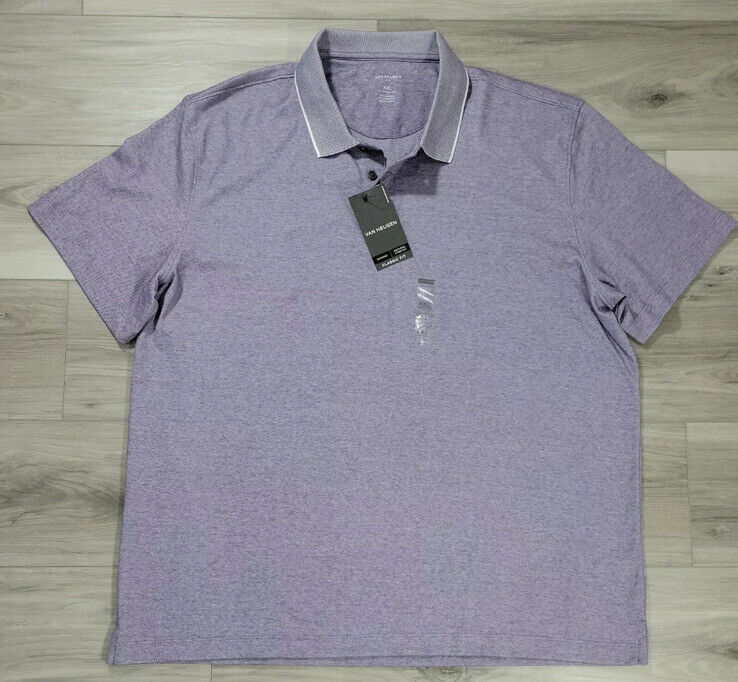 NWT Van Heusen Air Men's 3 Button Polo Shirt 2XL Grape Heather Cooling Classic.