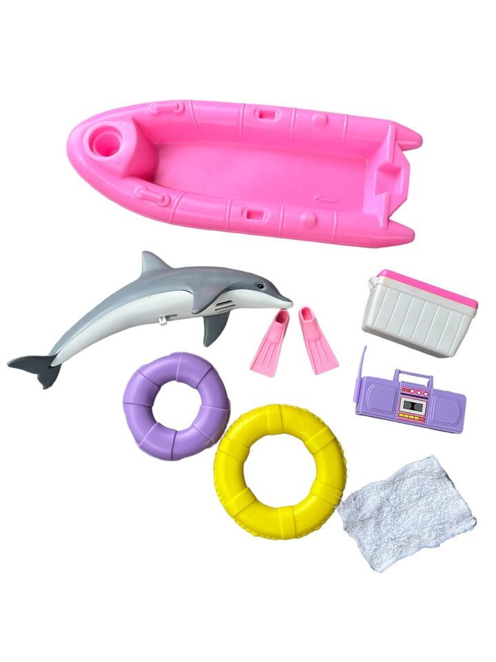 1994 90’s Baywatch Barbie 8” Dolphin Makes Sounds Beach Lot Cooler Boombox