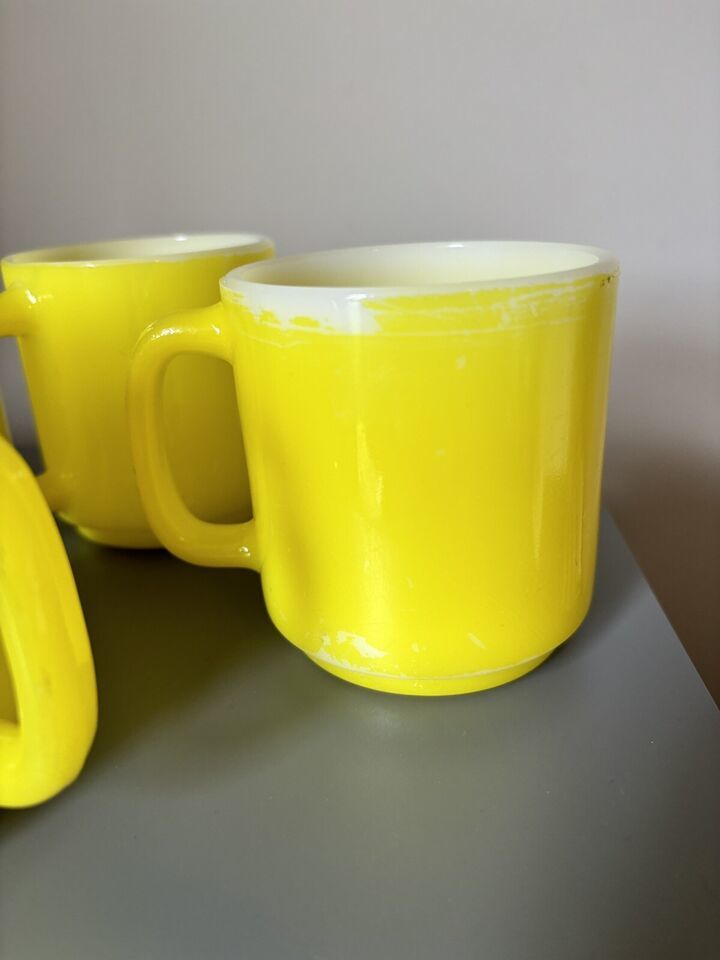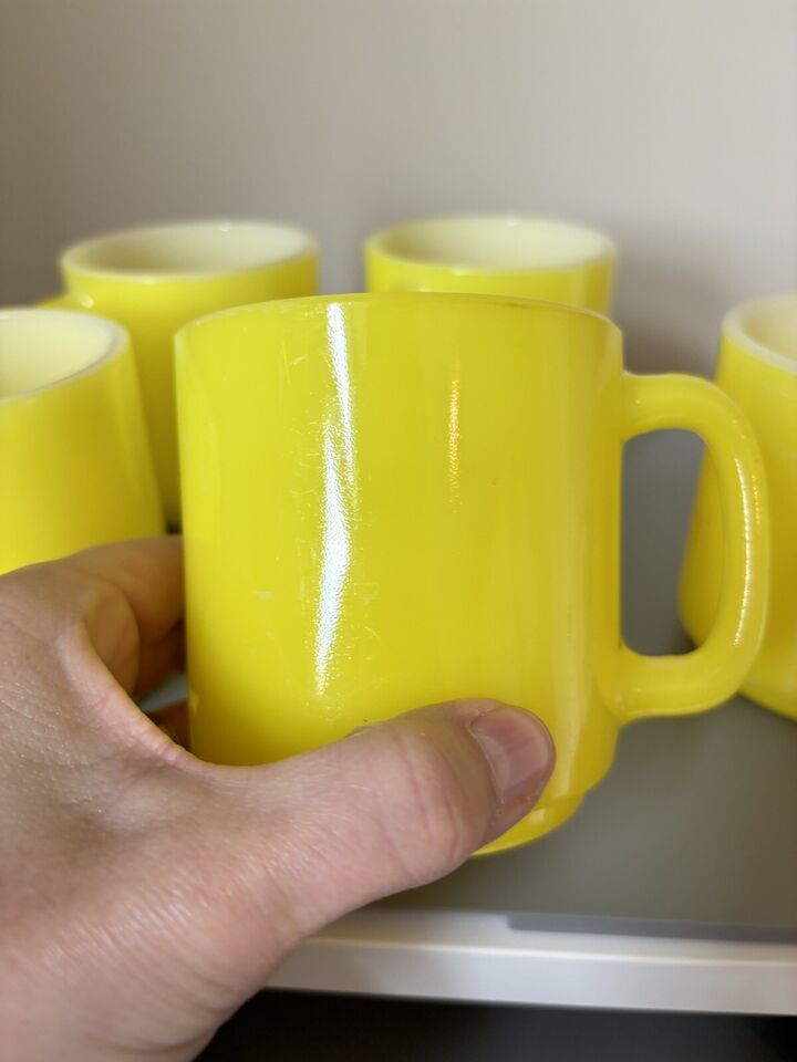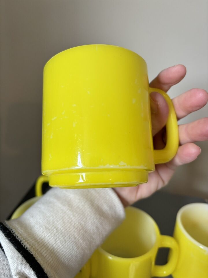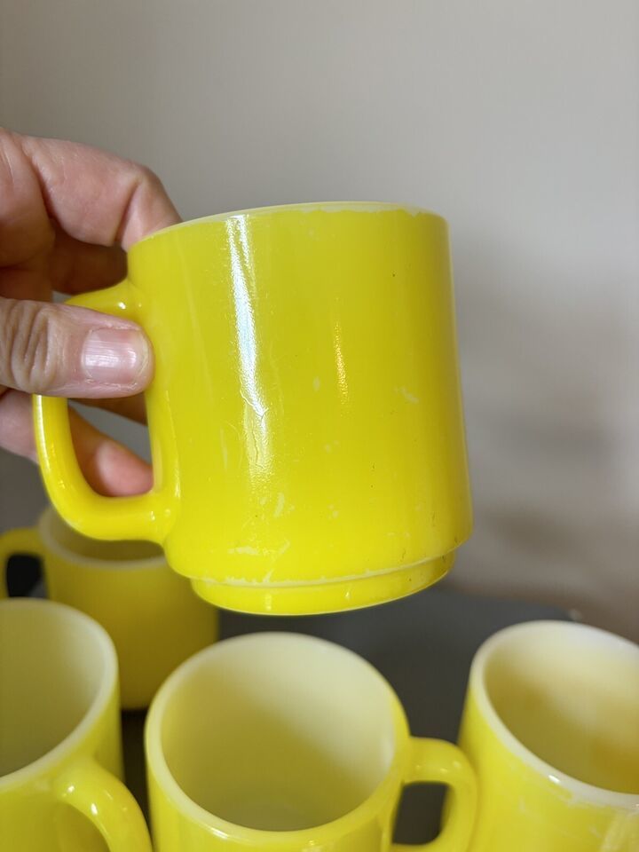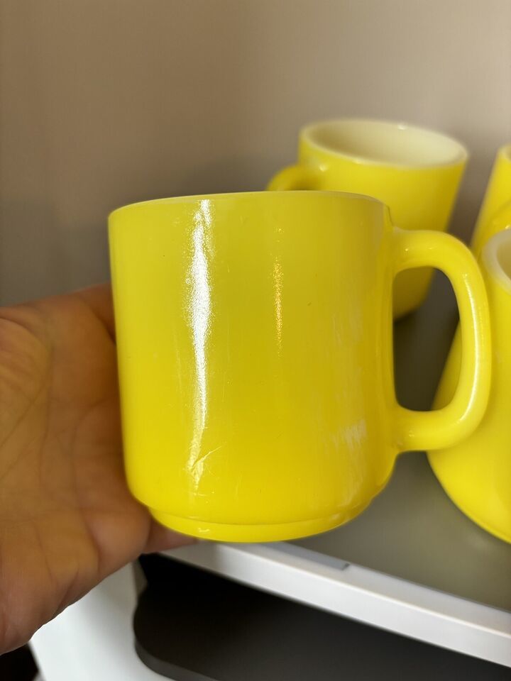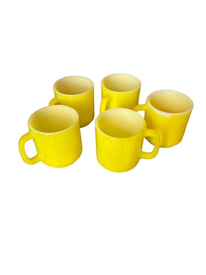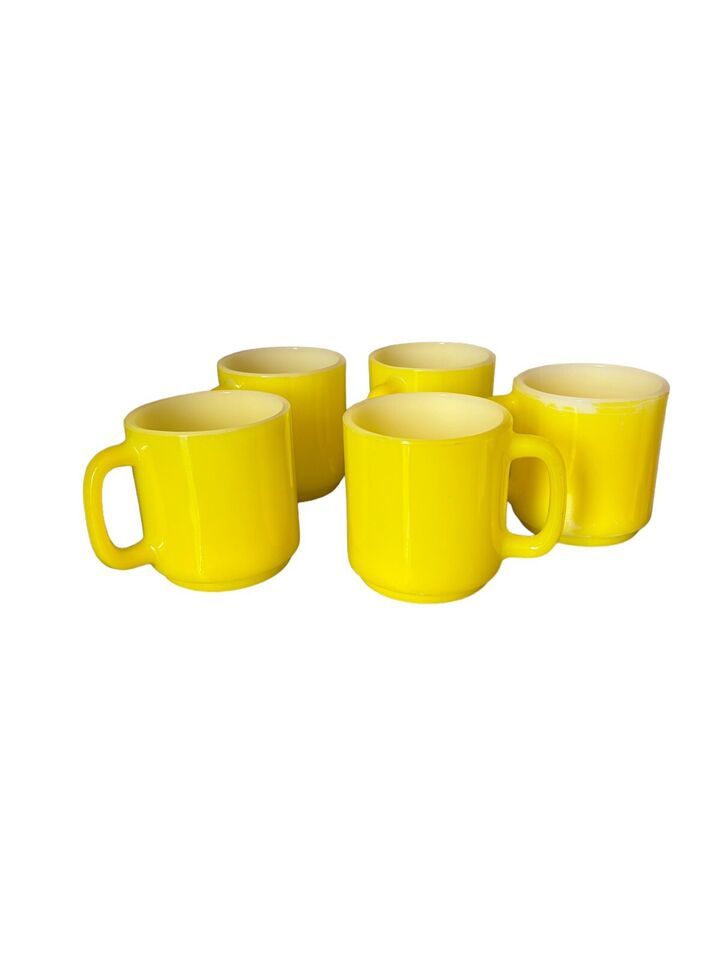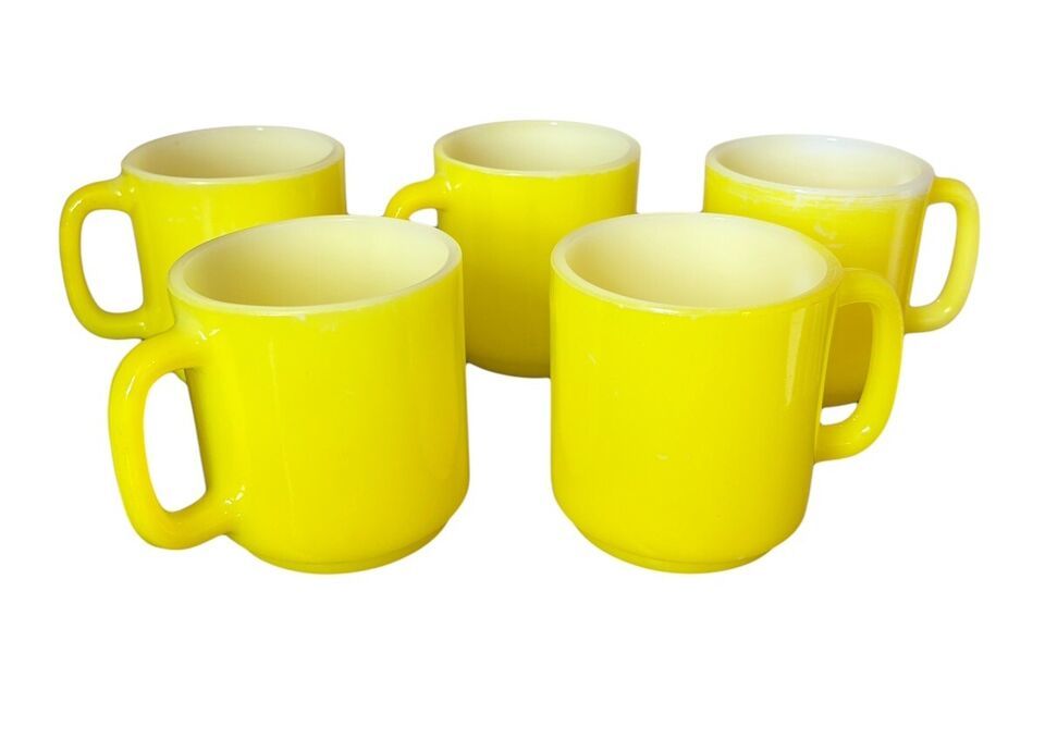 Vintage Glasbake Milk Glass Retro Coffee Mug Bright Yellow Lot 5