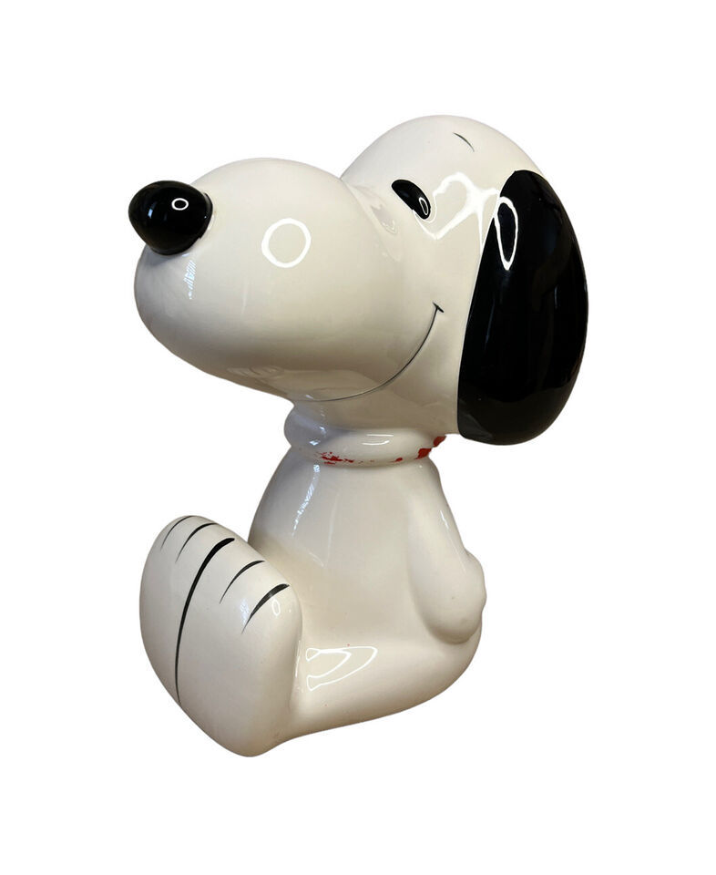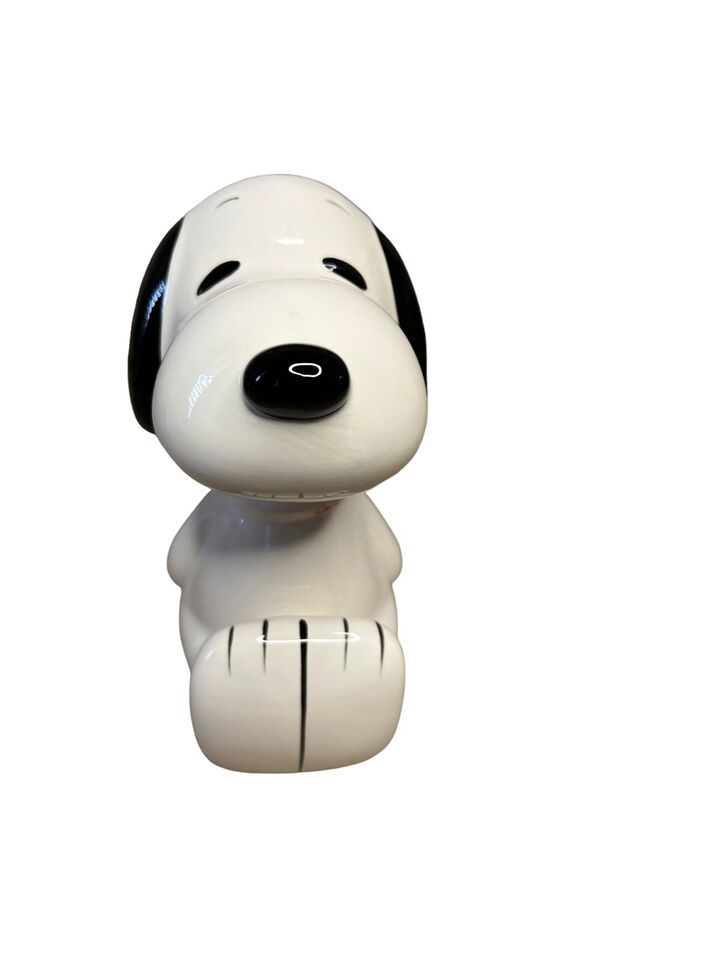 Vintage Syndicate Inc. Peanuts Snoopy 6" Ceramic Coin Bank 1966 with stopper. It appears there was a red collar around his neck that is partially worn off. otherwise excellent condition.