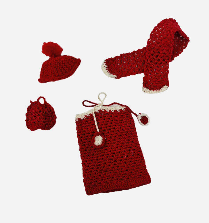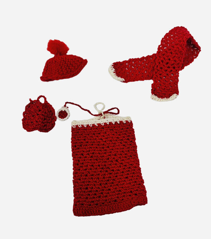 Handmade Vintage Skipper Barbie Doll Outfit Crocheted Dress & Purse Hat Scarf