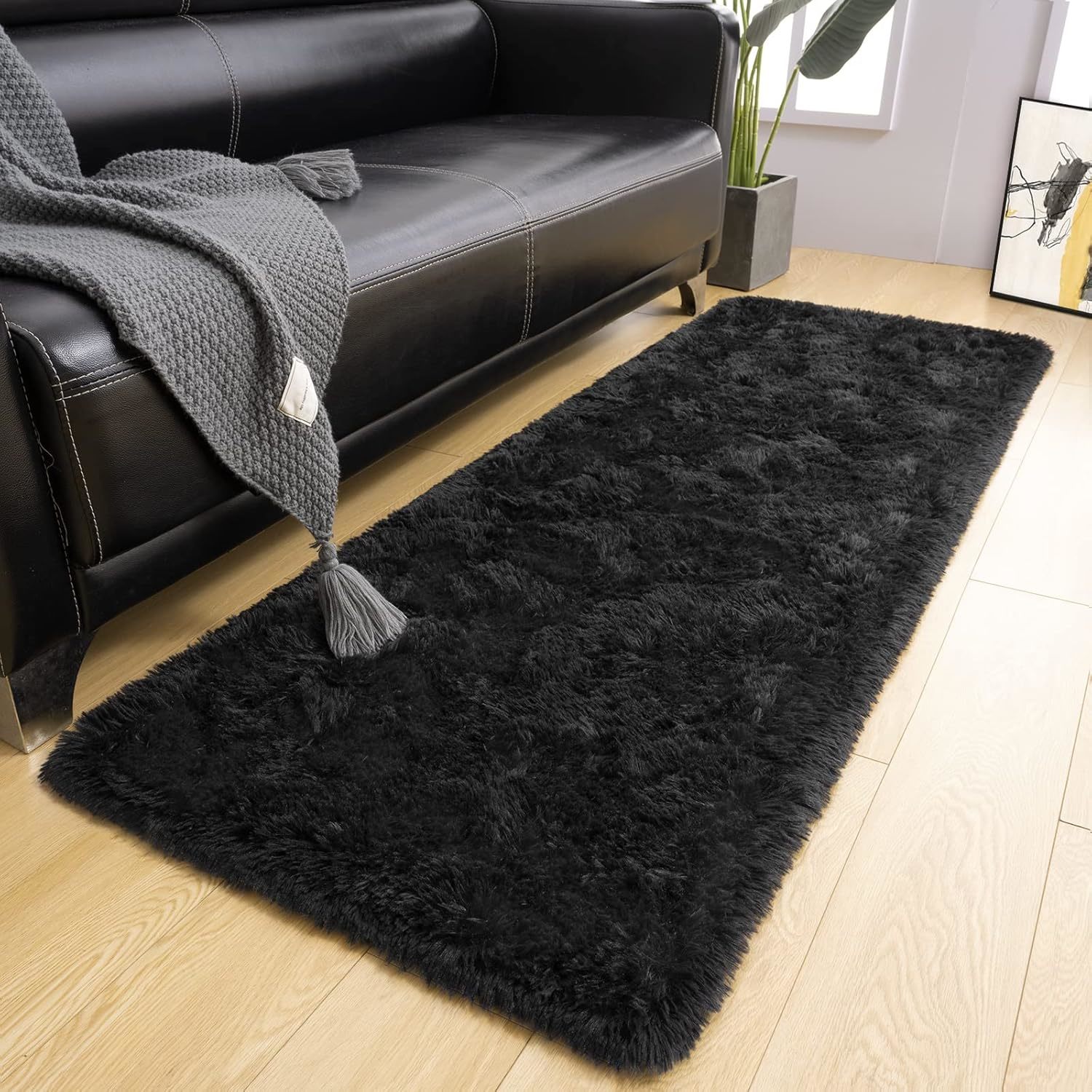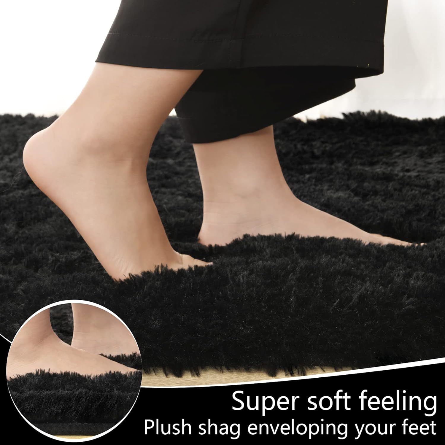 Lochas Ultra Soft Indoor Modern Area Rugs Fluffy Living Room Carpets For, Black