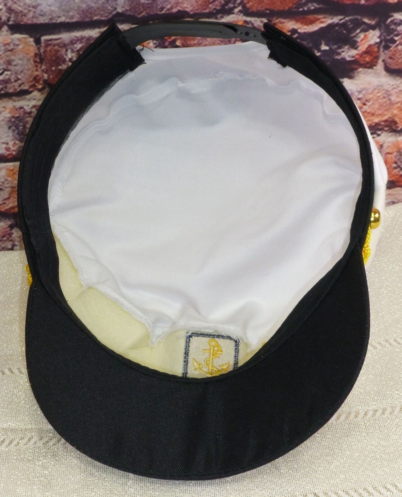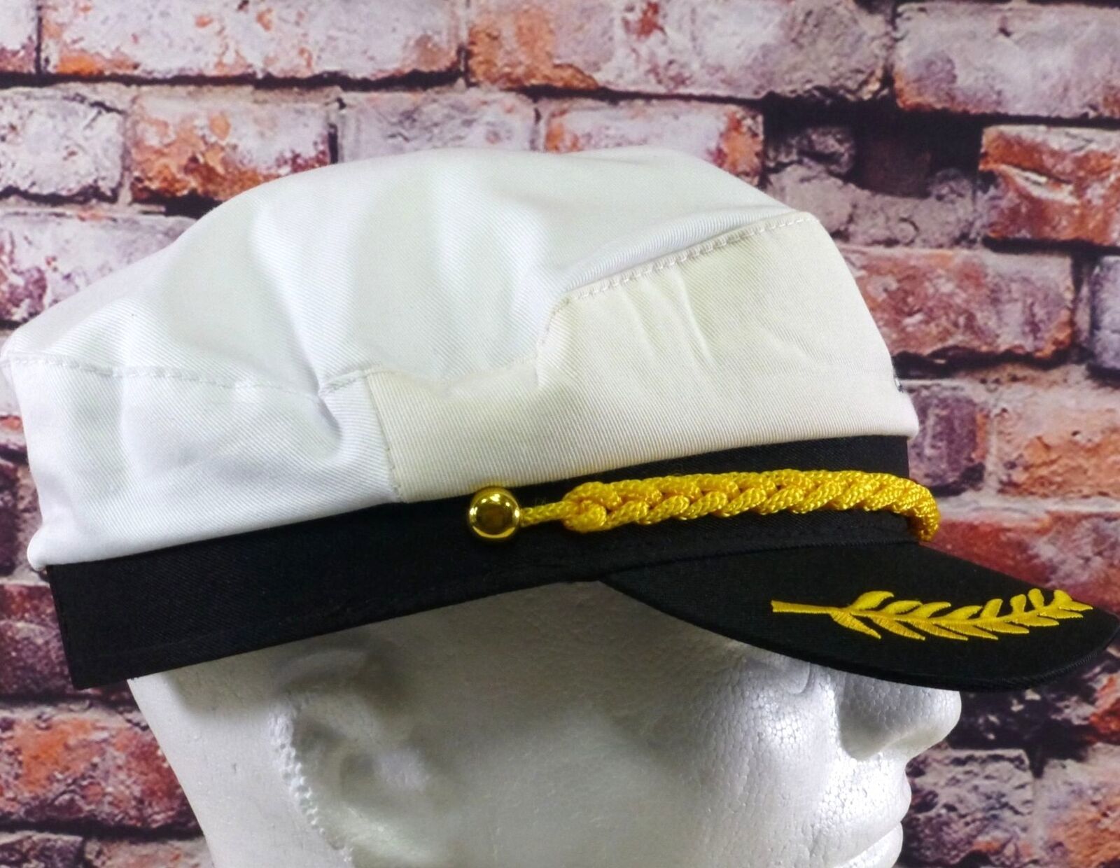 This captain's hat features classic nautical-themed embroidery with an adjustable snapback for a secure fit. Designed for professional or costume use.