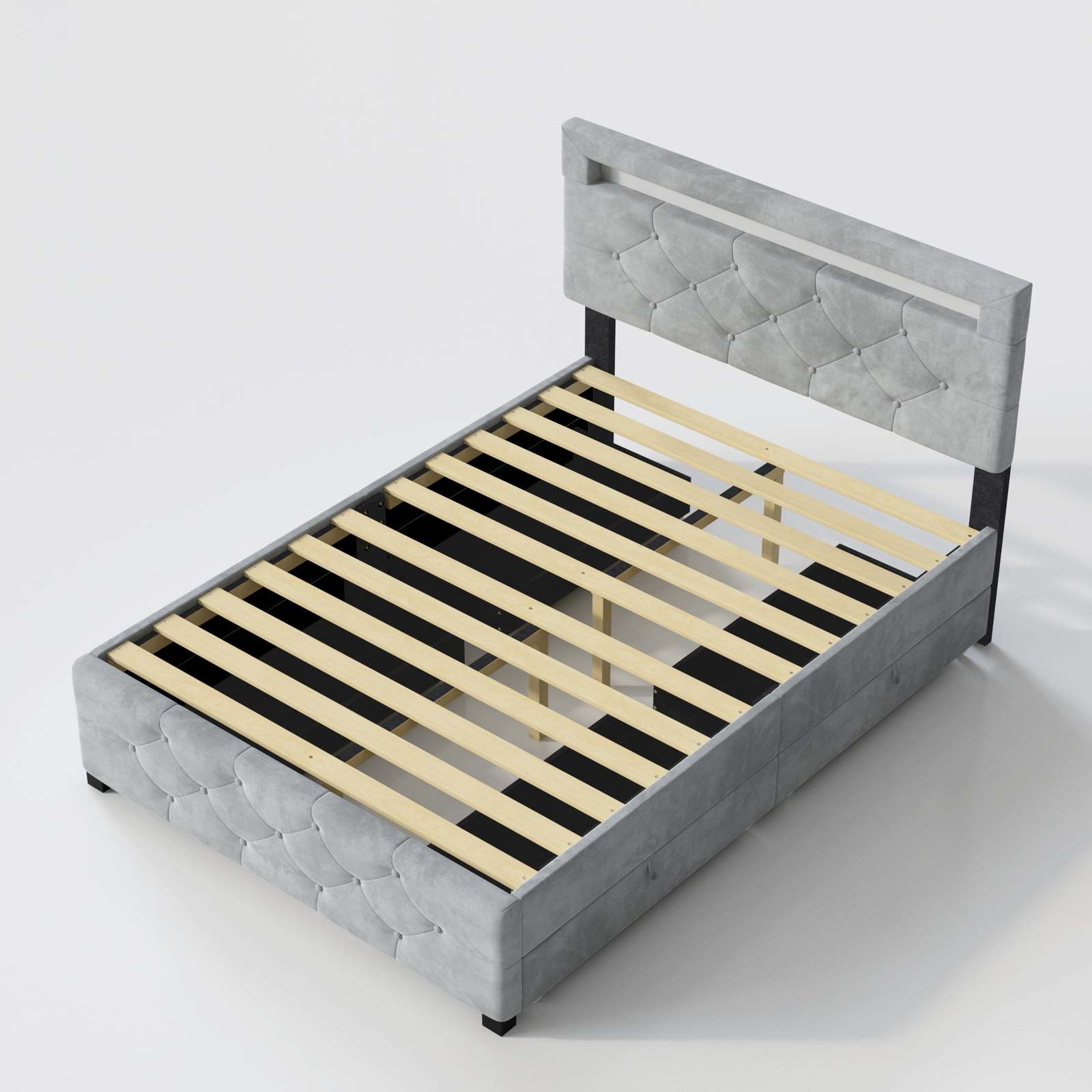 ?Stylish and Comfortable?Crafted with luxe velvet upholstery and button detailing, this contemporary bed frame features high-density foam cushioning that delivers exceptional lumbar support for extended reading sessions. The integrated LED headboard lighting system provides adjustable ambient illumination, creating an elevated relaxation experience in your personal sanctuary.