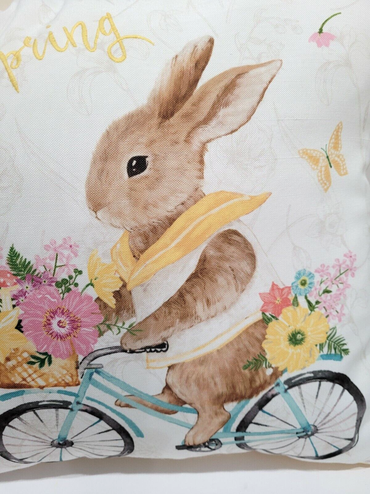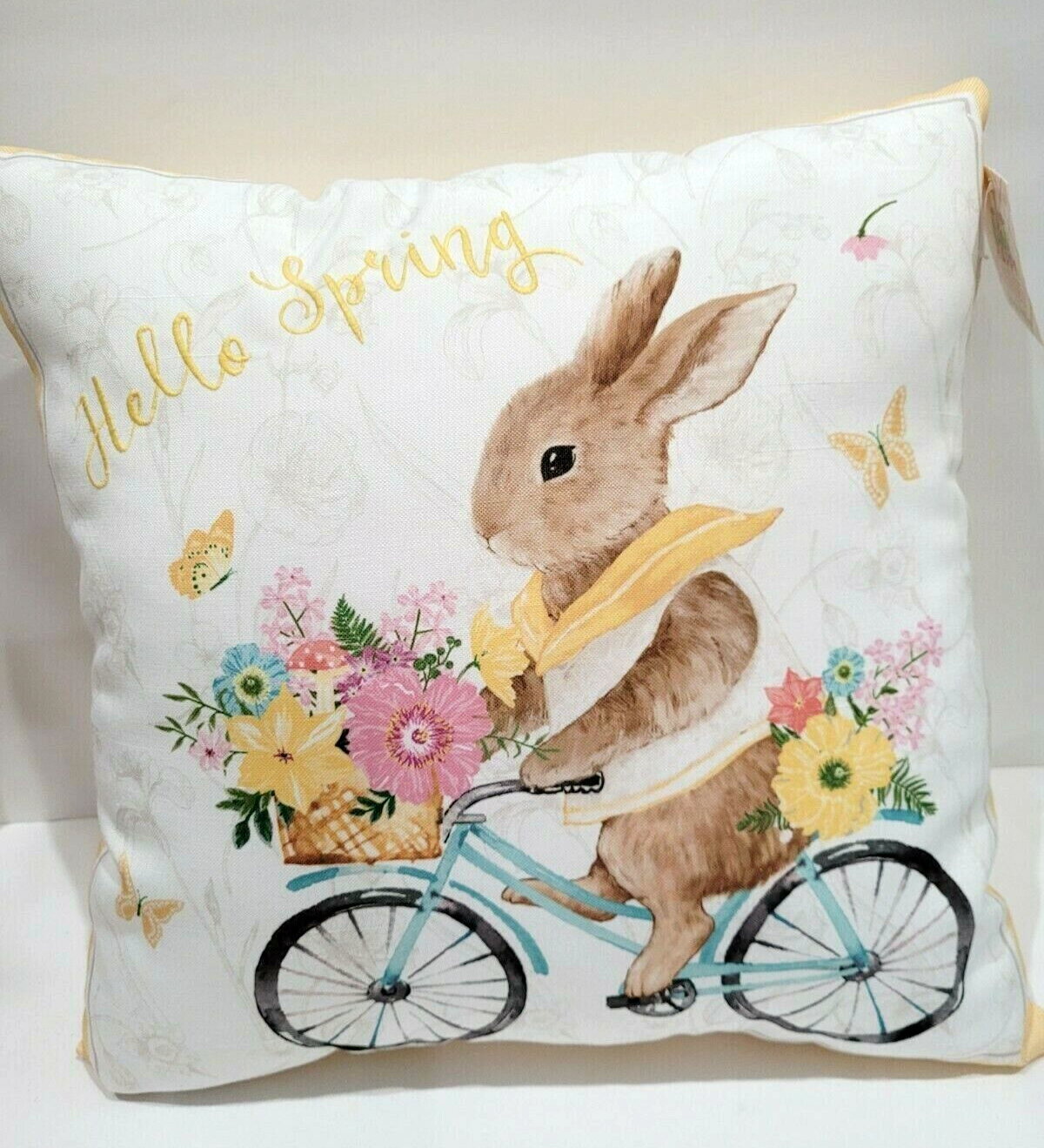Easter Bunny Rabbit Riding Bicycle Pillow Home Decor 18" x 18" NEW