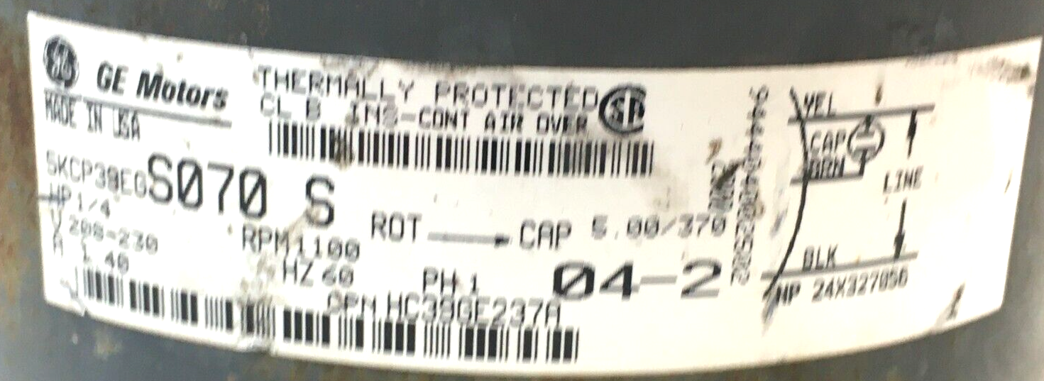 GE 5KCP39EGS070S Carrier HC39GE237A Condenser Motor 1100 RPM 1/4 HP used #ME715