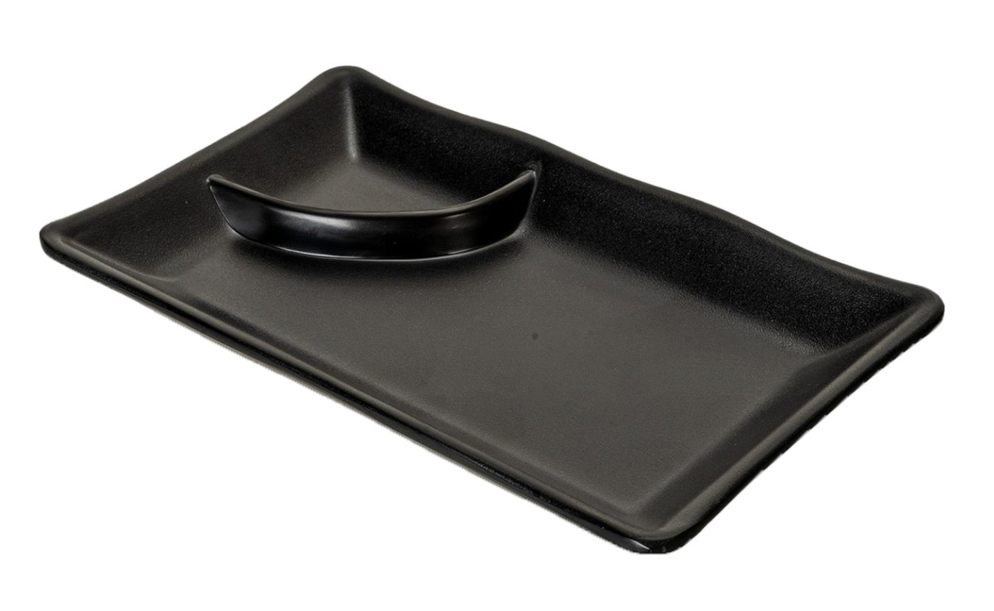 Pack Of 6 Ridged Matte Black Melamine 2 Partitions Rectangular Sushi Plates