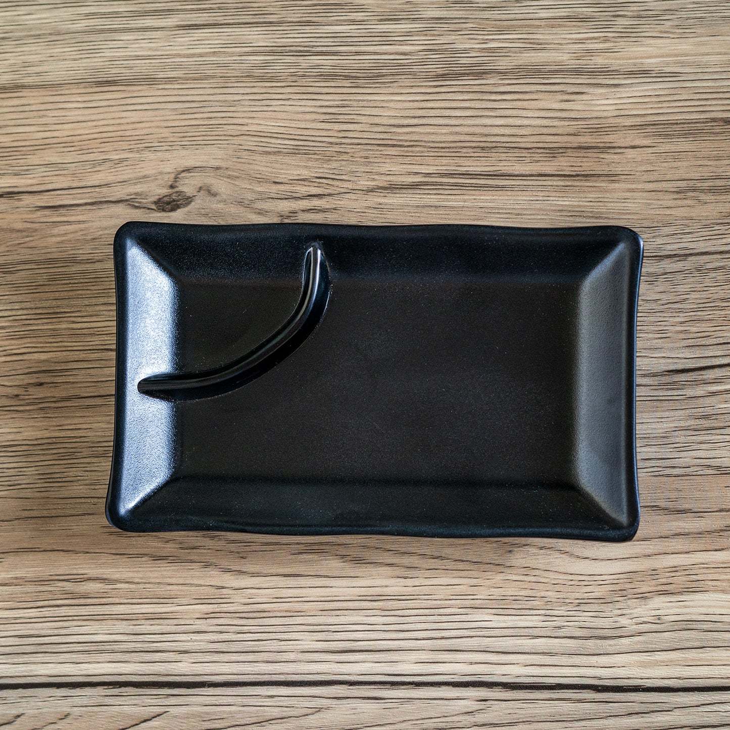 ? This rectangular plate has an artistic wavy border style with a small partition for dipping sauces/condiments on one corner. The curved sloping border lips retain liquids and sauces from the food being served; keeping moisture and flavor in your masterpiece. Perfect for sashimis, sushis, dumplings, appetizers, salads, yakitoris, hors d'oeuvres and more! With gourmet foods, presentation is key and these plates will take your cuisine up a big notch!