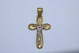 UNOAERRE 18K Two Tone Crucifix Cross Jesus Pendant Religious Christian Catholic