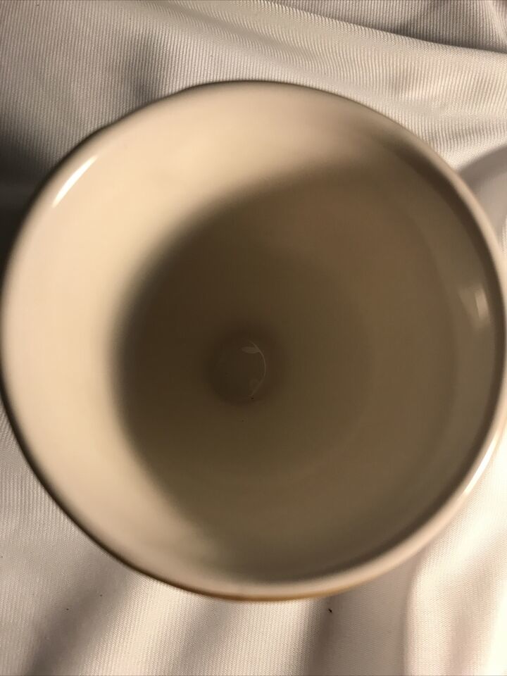 A little paint wear but in otherwise great condition. The chip in the mug is supposed to be there.