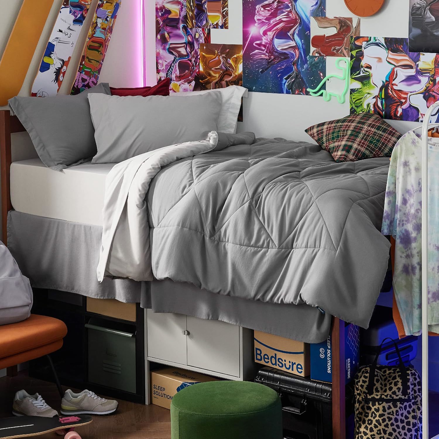 Bedsure Twin Xl Comforter Set - 5 Pieces Reversible Grey, Pillowcase & Sham