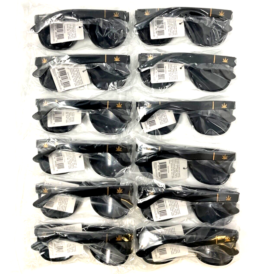 WHOLESALE DOZEN 12 PCS LOT BLACK GOLD MARIJUANA WEED LEAF SQUARE SUNGLASSES