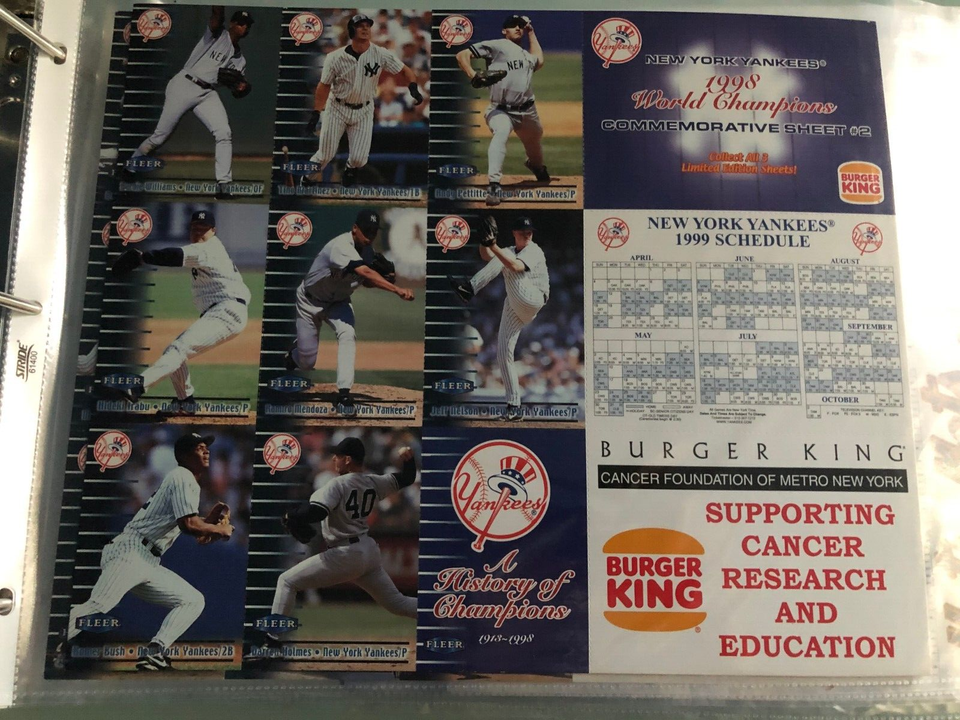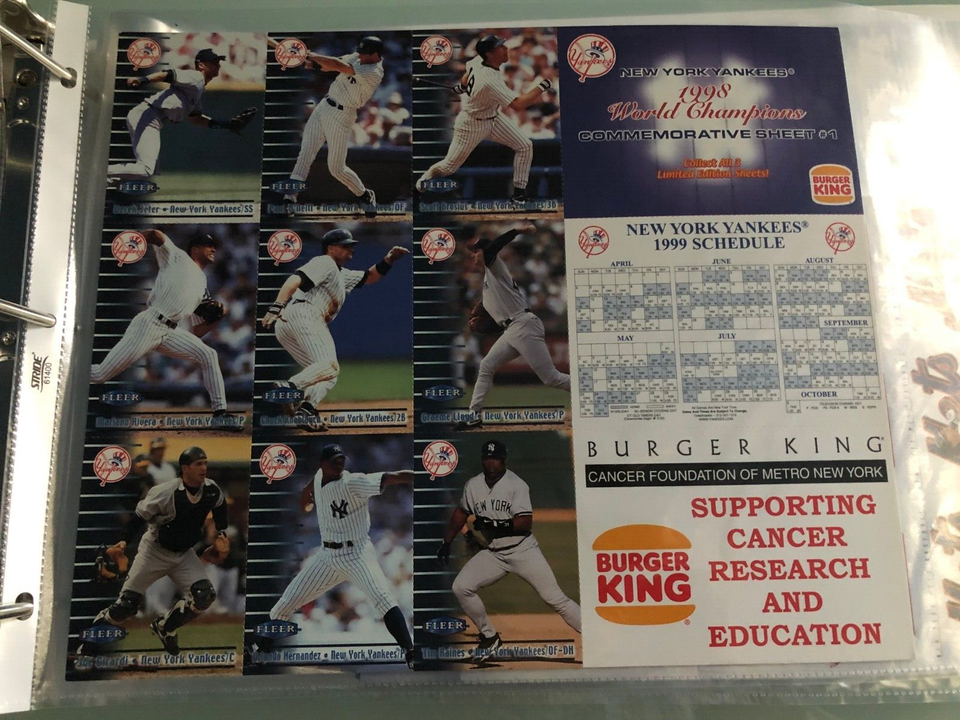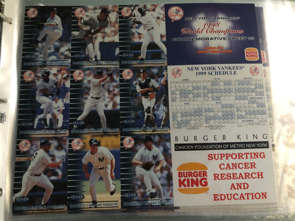 1998 FLEER BURGER KING NEW YORK YANKEES UNCUT CARD SHEETS (3) LIMITED EDITION. COMES FROM SMOKE FREE HOME. UNITED STATES ONLY PLEASE. FREE SHIPPING.