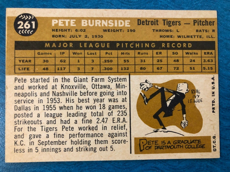 1960 TOPPS BASEBALL CARD PETE BURNSIDE #261 (NM). COMES FROM SMOKE FREE HOME. FREE SHIPPING.
