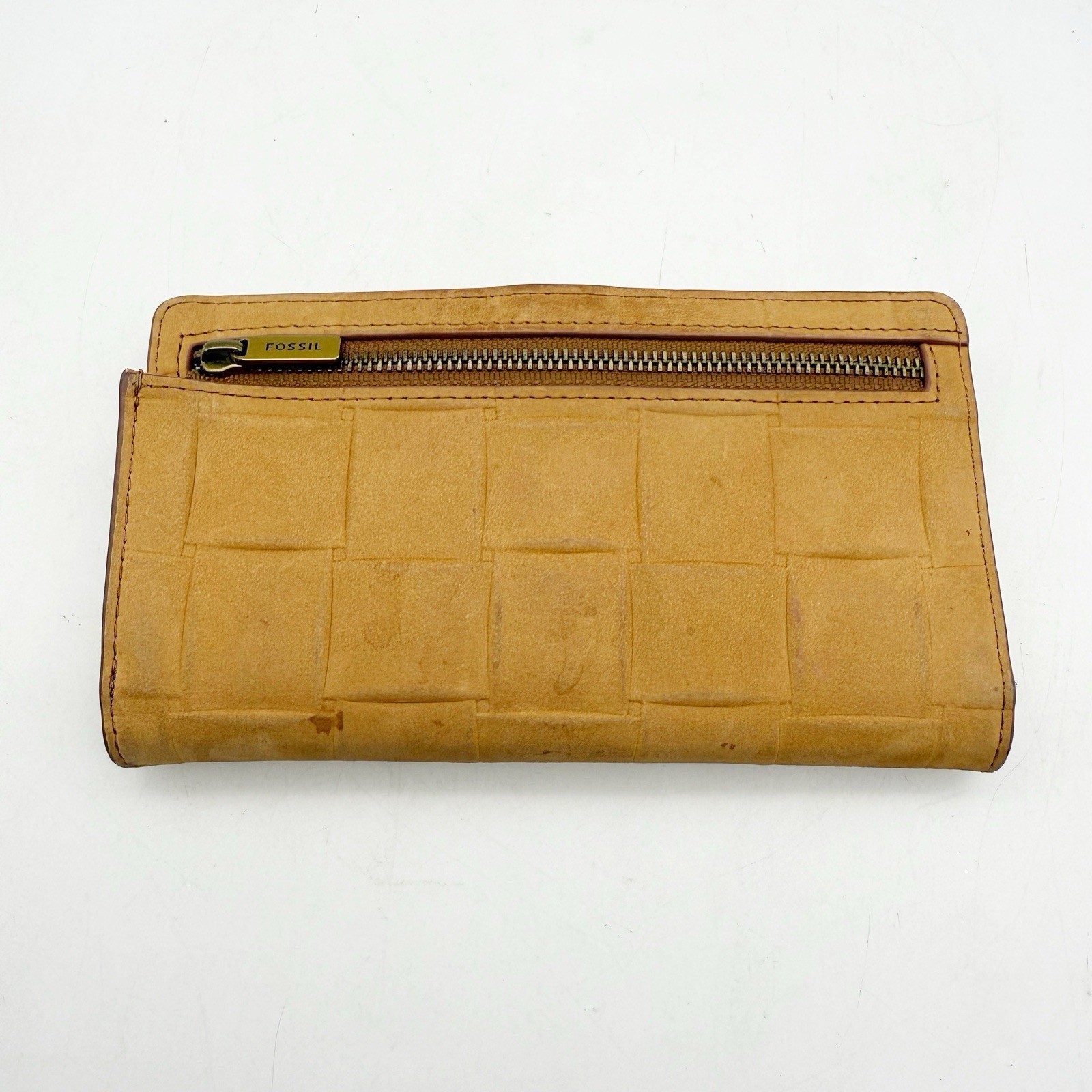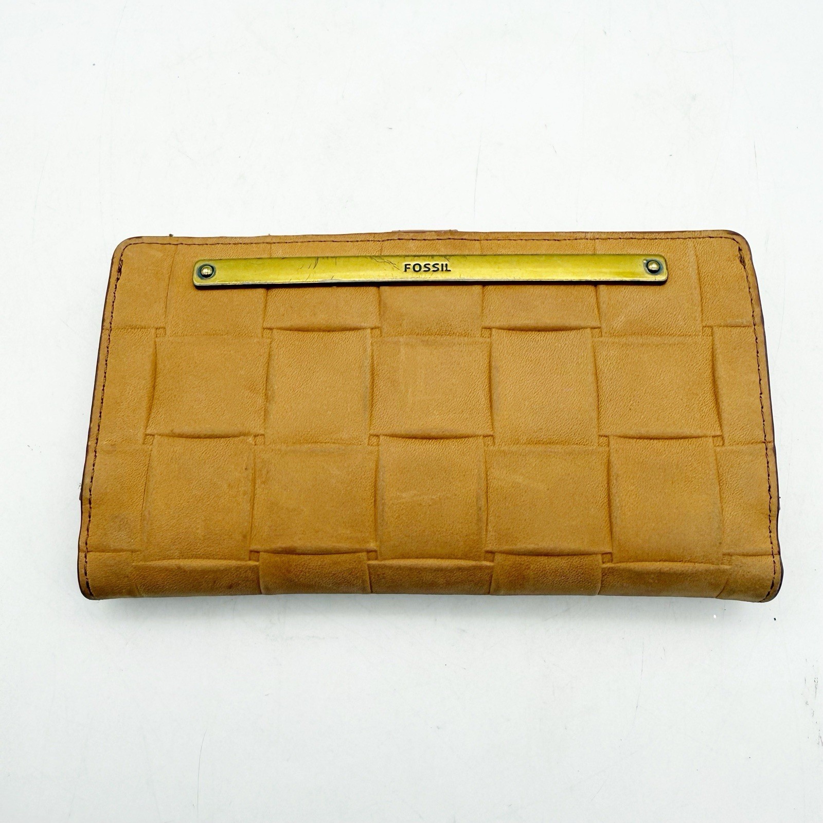 FOSSIL Camel Leather Wallet Liza Slim Bifold Weave Design 7x4