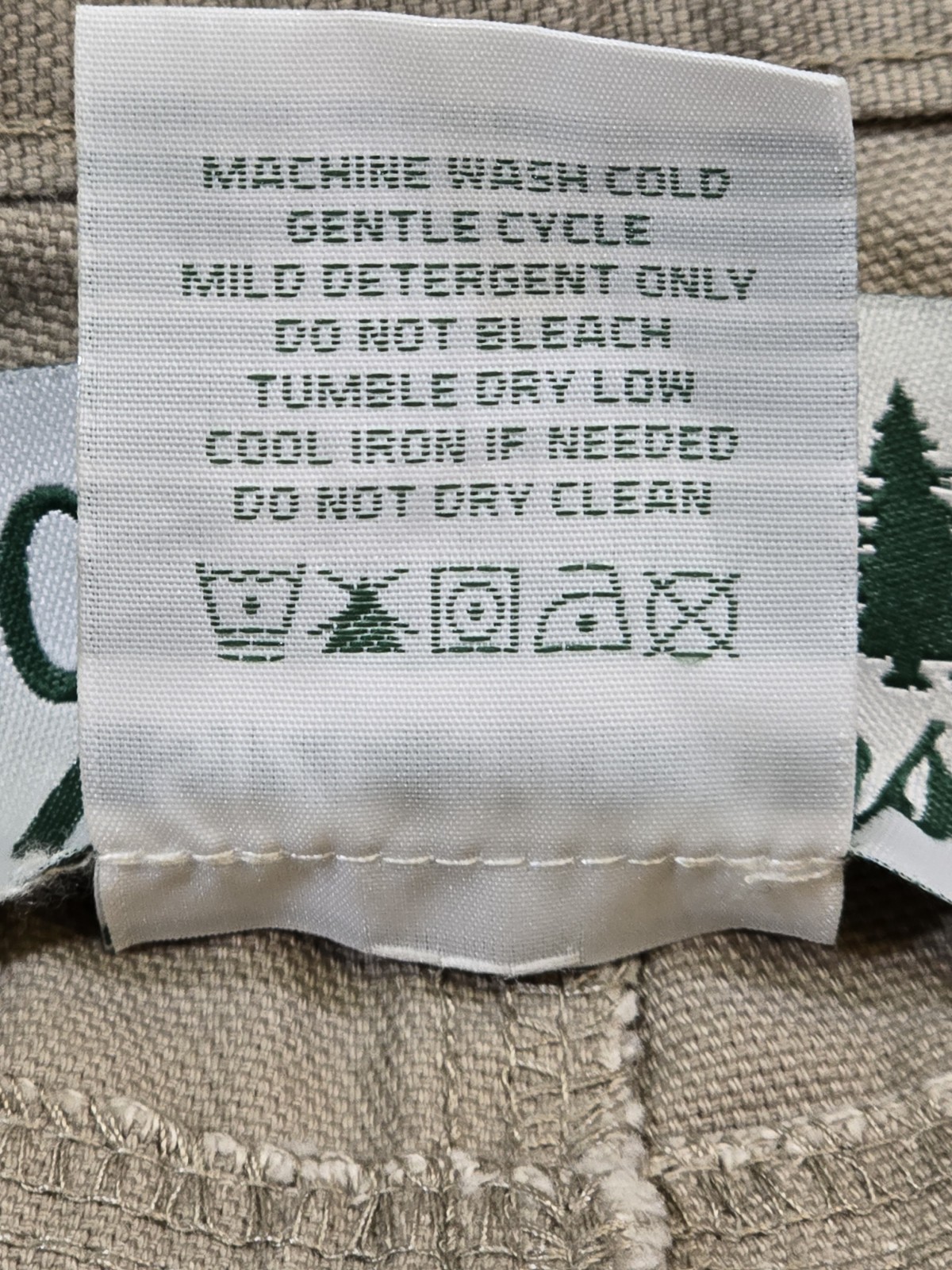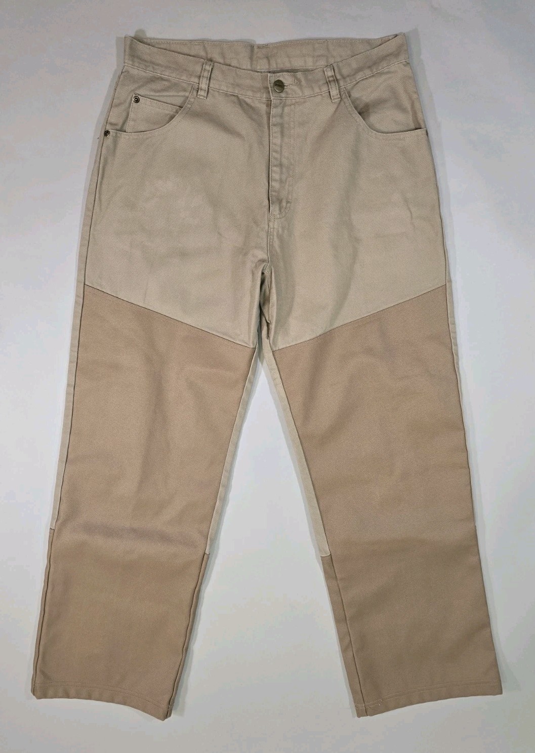 Labeled 34x30 measured at 34x31. The Scheels Outfitters Brush Pants Men's 34x30 Workwear are designed for outdoor activities such as hunting and guard work. Made from a durable blend of polyester and cotton, these pants feature a mid-rise fit with a straight leg style for comfort and ease of movement. The dark wash denim and brown color make them versatile for all seasons, while the 5-pocket design and logo accents add practicality and style. Easy to care for and machine washable, these pants are a reliable choice for various outdoor adventures.