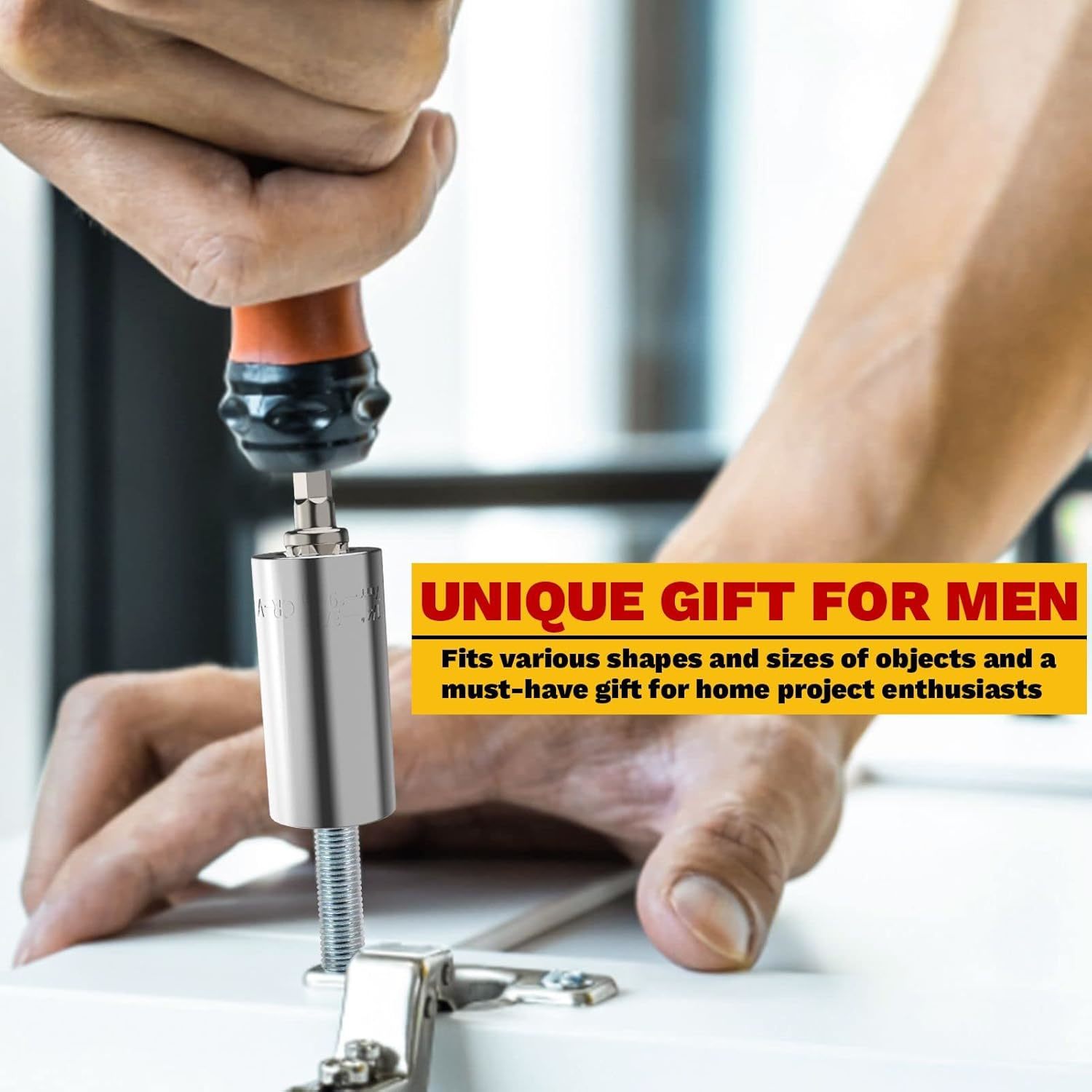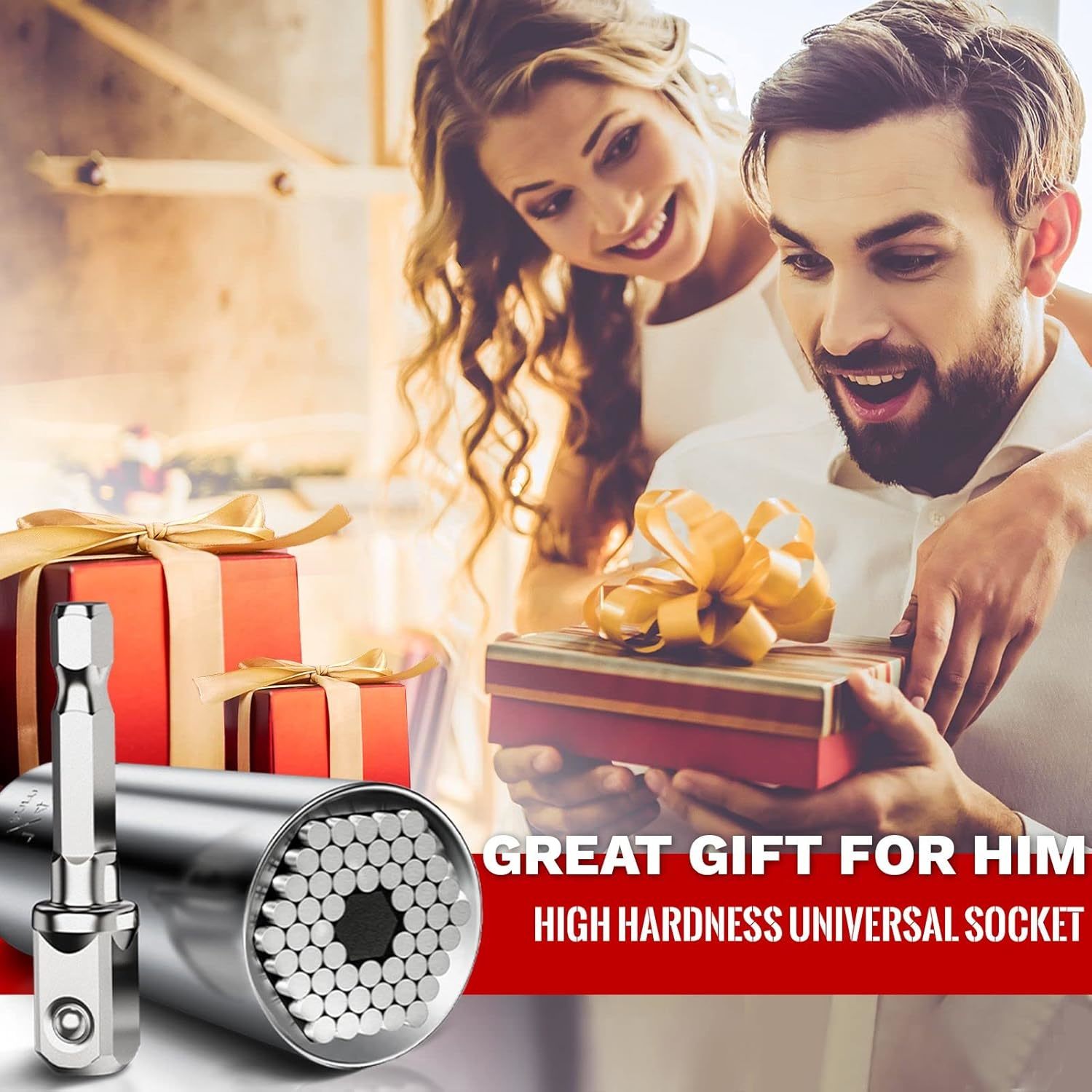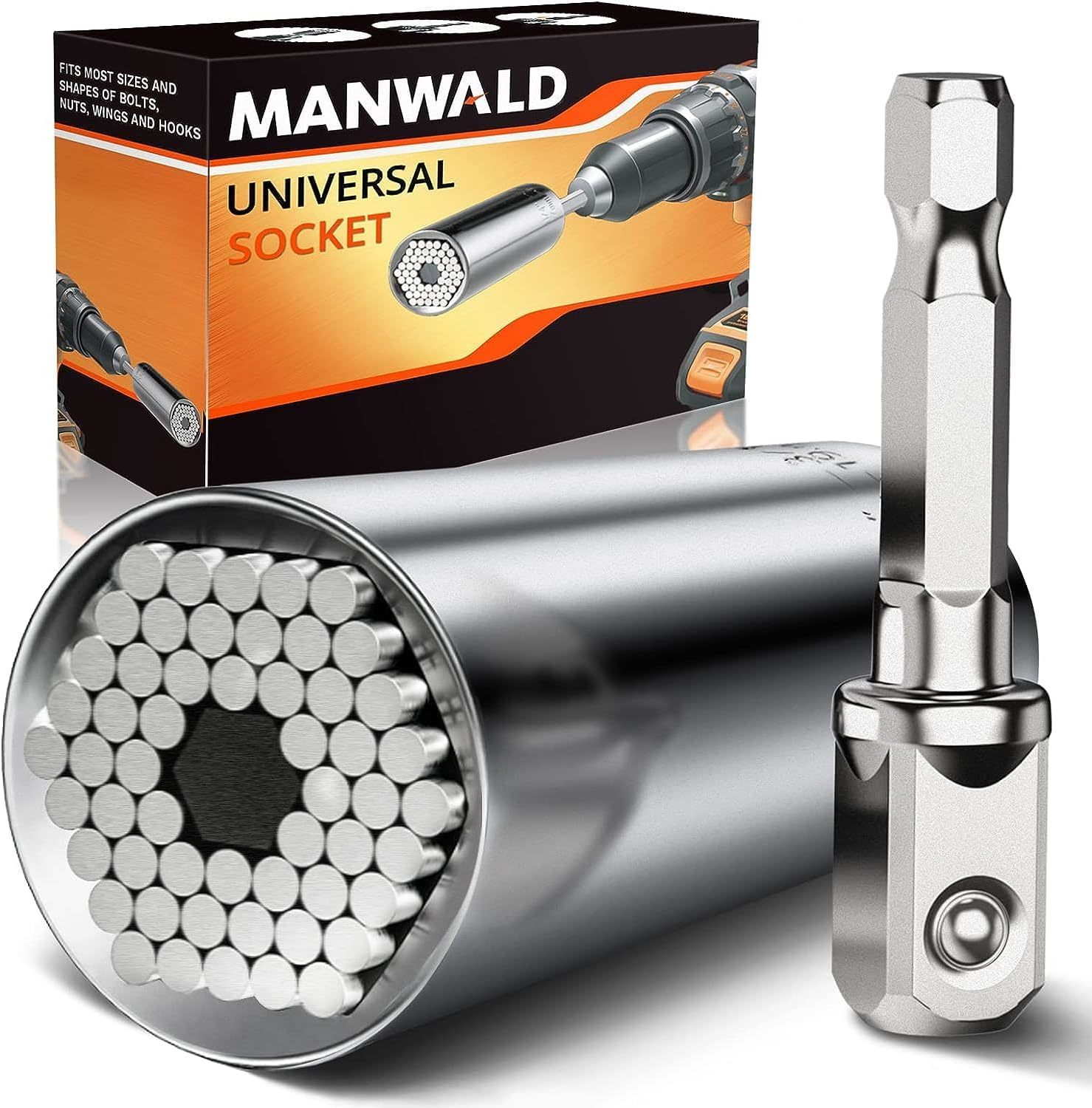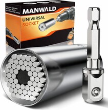 Gifts for Men: MANWALD universal sockets must be the perfect gifts for men and women. It makes for unique practical mens gifts on various occasions like Christmas; Thanksgiving; Birthday; Anniversary; Halloween; Valentines Day; Fathers Day; Cool stuff for men who have everything Cool Gadgets for Men: The universal socket is composed of fifty-four single hardened steel spring pins, which allows the sleeve to adapt to any shape immediately and grip most nuts; hexagon nuts; square nuts; hexagons; screws; hooks; lag screws; bolts Heads and other strangely shaped fasteners; And it equipped with a power drill adapter, which can connect with most electric drills Premium Material: The super tool socket is made of durable chrome vanadium steel; fifty-four super strong steel rods are driven by separate springs, allowing the nut driver bits to automatically fit any shape in an instant and move to different type of fasteners, there is no need to replace the socket every time; Compact shape makes the universal socket tool easy to carry Work Efficiently: Multi-function sockets provide you with universal compatibility, suitable for screws of various shapes' It can save you time and money because you can constantly switch between multiple tools and sizes to improve work efficiency; This socket can replace the whole set of old tools, meeting all your needs Valentines Day Gifts for Men: Our universal socket is men's dream tool, a practical gift that helps them wocking more effectively. If you have any problems with our universal socket, please feel free to contact us, and we'll provide best service for you