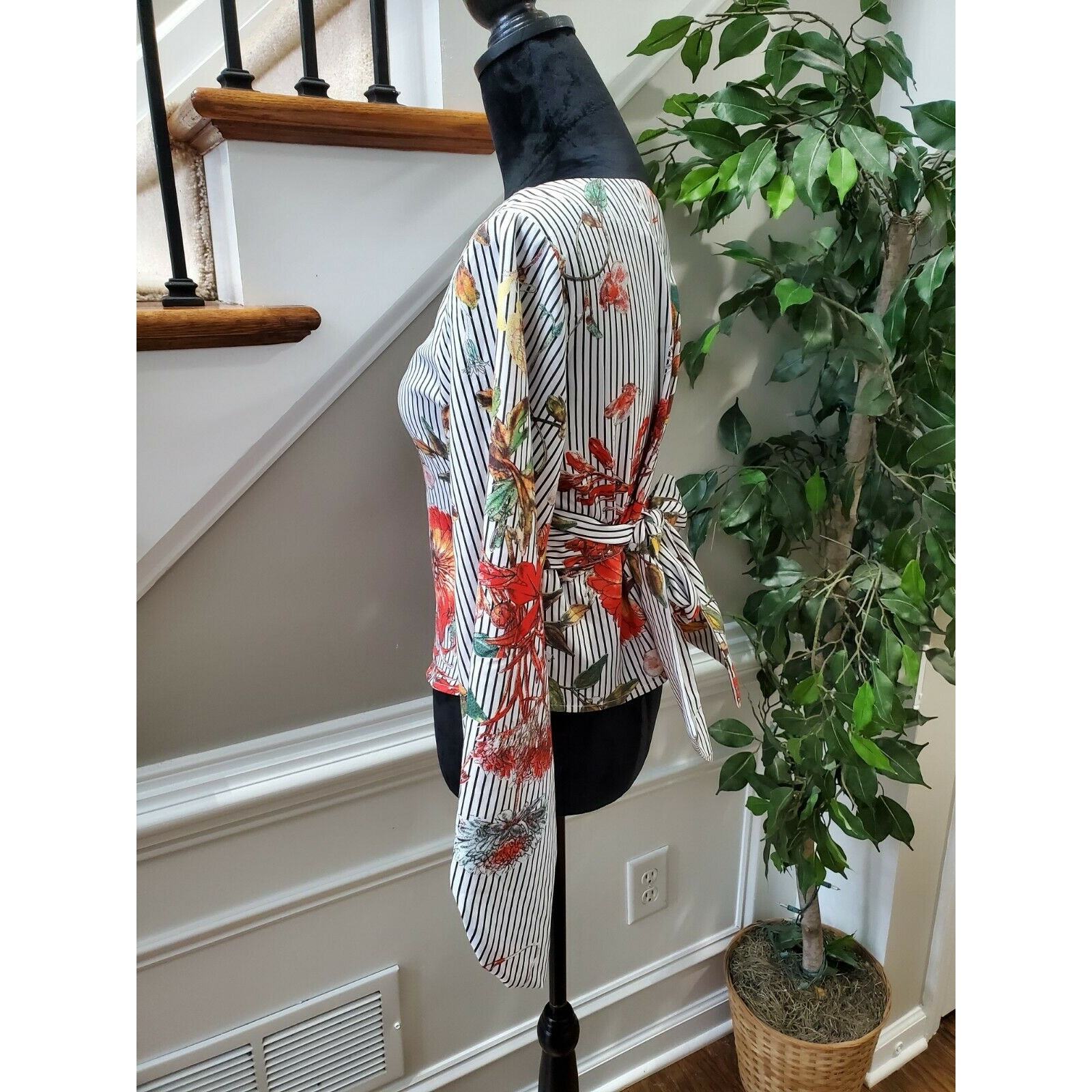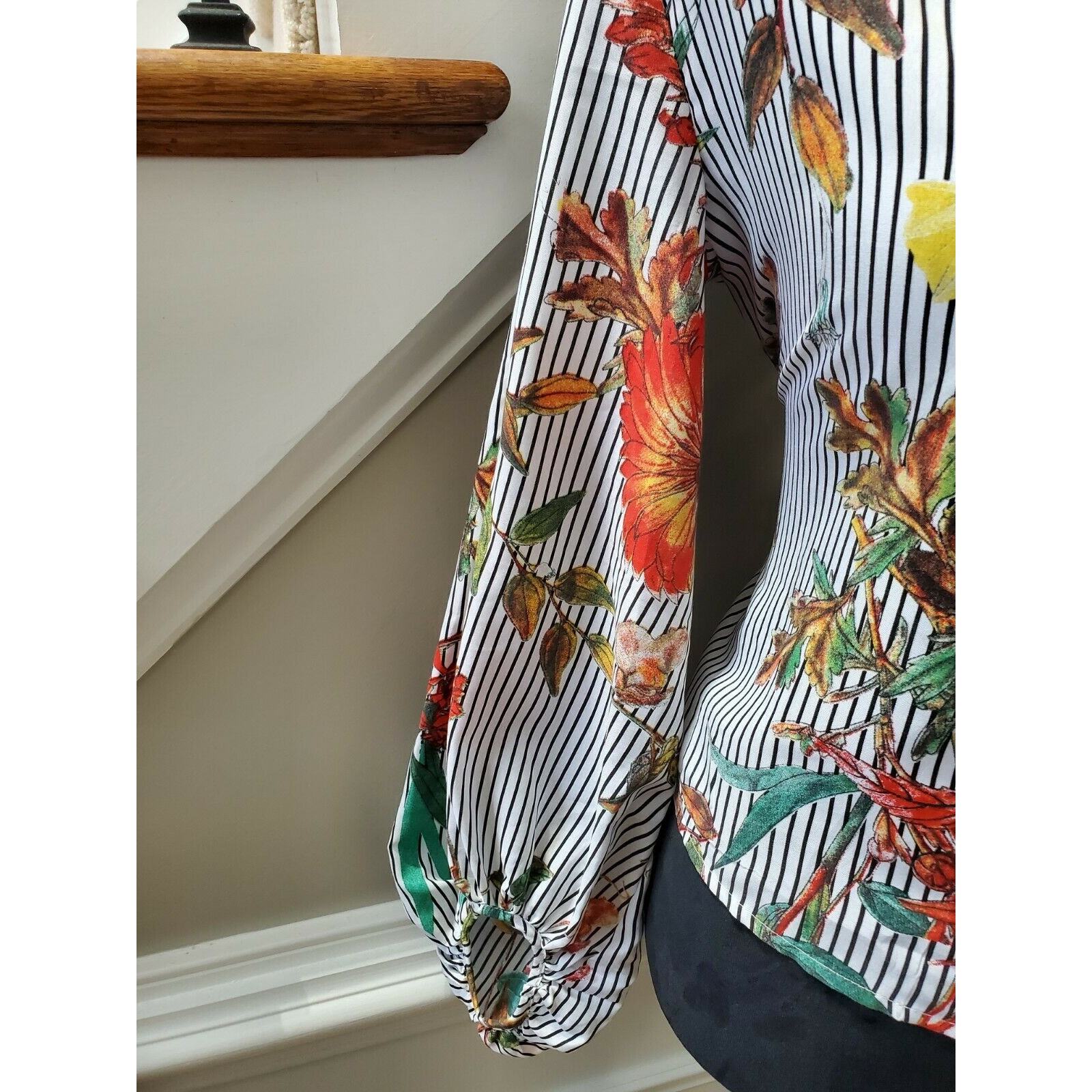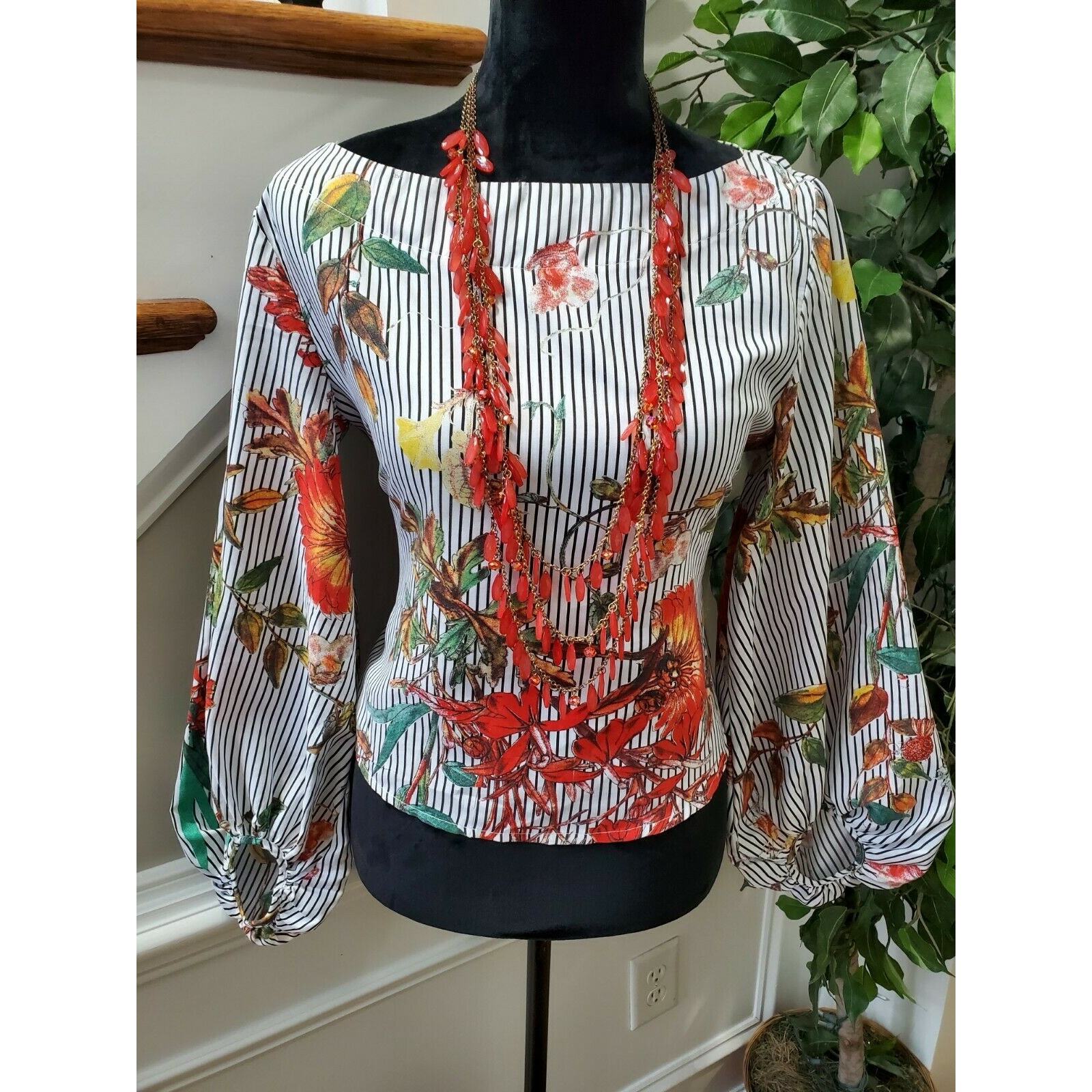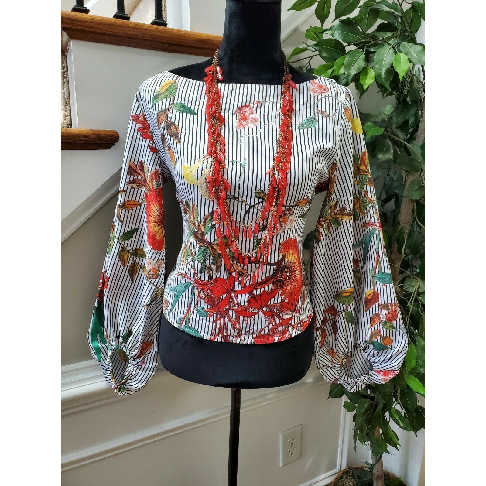 Sheln Women's Multicolor 100% Polyester Boat Neck Long Sleeve Blouse Size Small