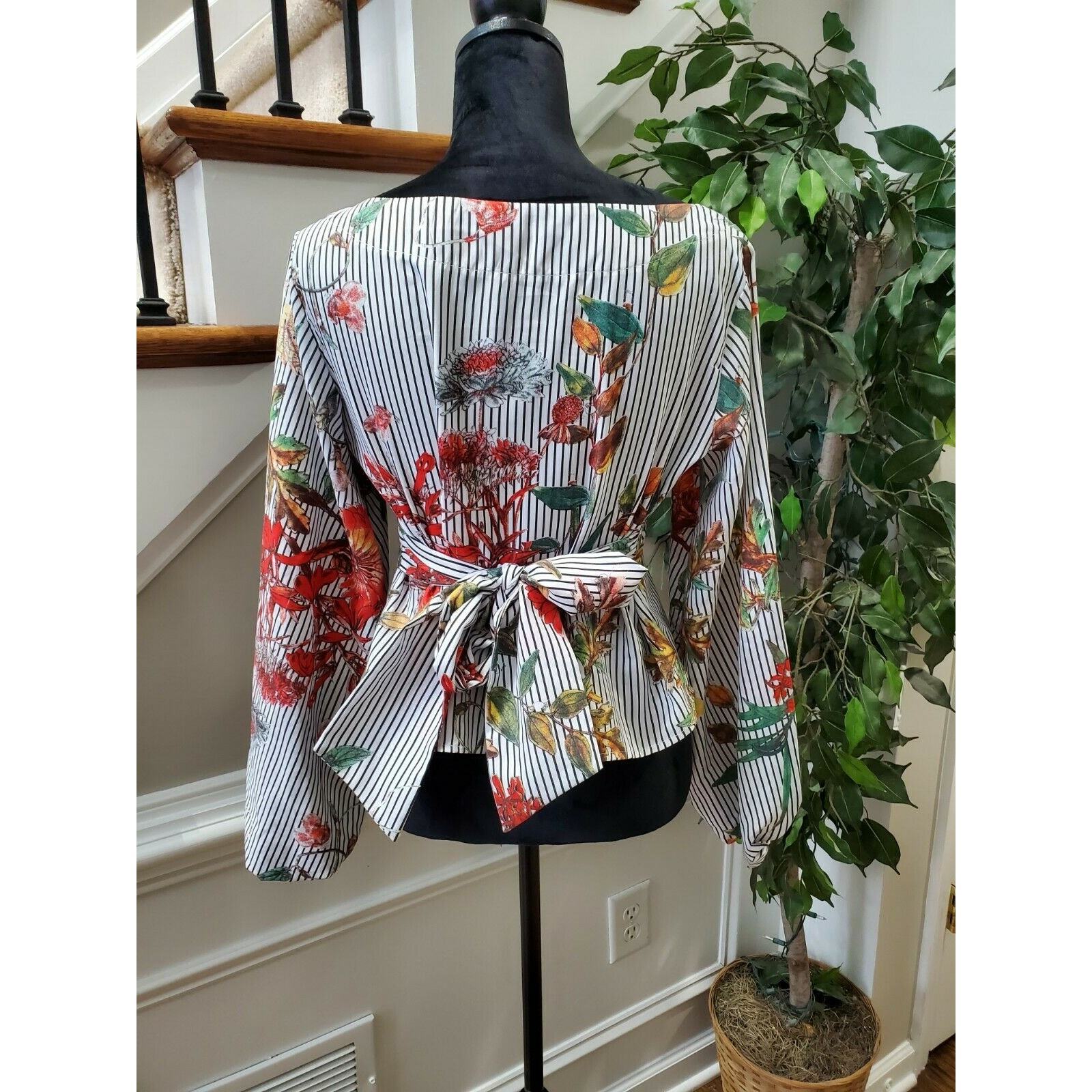 Shein Women's Multicolor 100% Polyester Boat Neck Long Sleeve Blouse Size Small