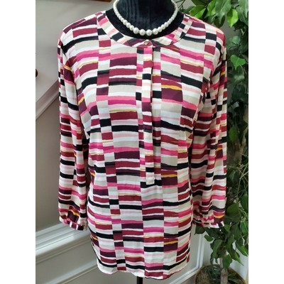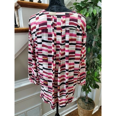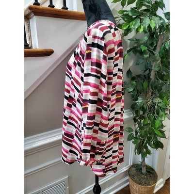 JM Collection Women's Multicolor Polyester Round Neck Long Sleeve Blouse Size XL