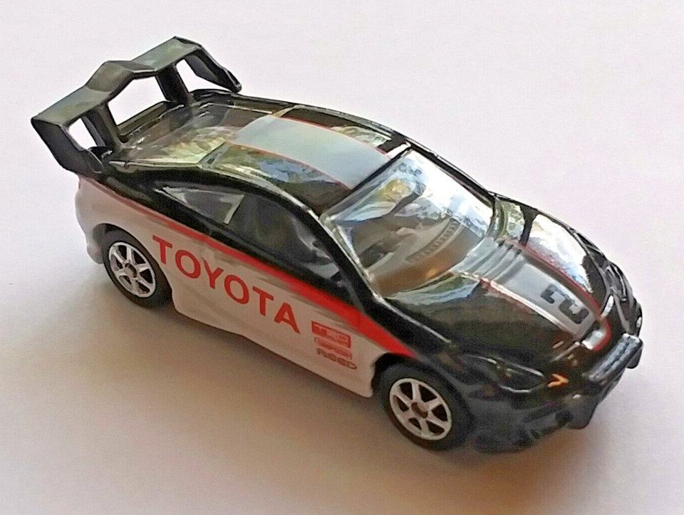 This is a new just out of package condition 7th and final generation (1999-2006) of Toyota Celica hatchback. This is a highly detailed version, with lights, Toyota emblems, and real rubber tires!