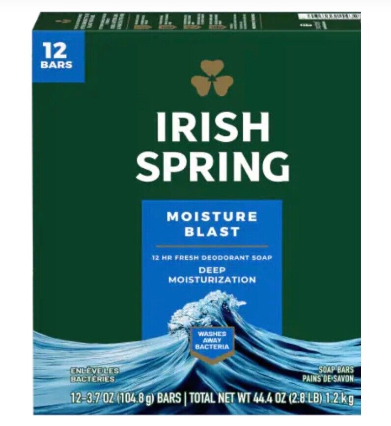 Irish Spring Bar Soap, Moisture Blast,12 Hour Fresh, 12 Pack Bars - 3.7 Oz Each