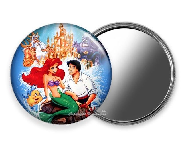 LITTLE MERMAID PRINCESS ARIEL AND ERIC URSULA TRITON FLOUNDER FISH HAND MIRROR
