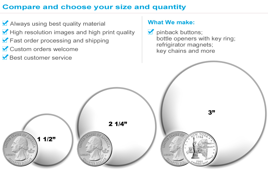 custom keychains are offered in 2 sizes, 2.25" round and 3โ round and are