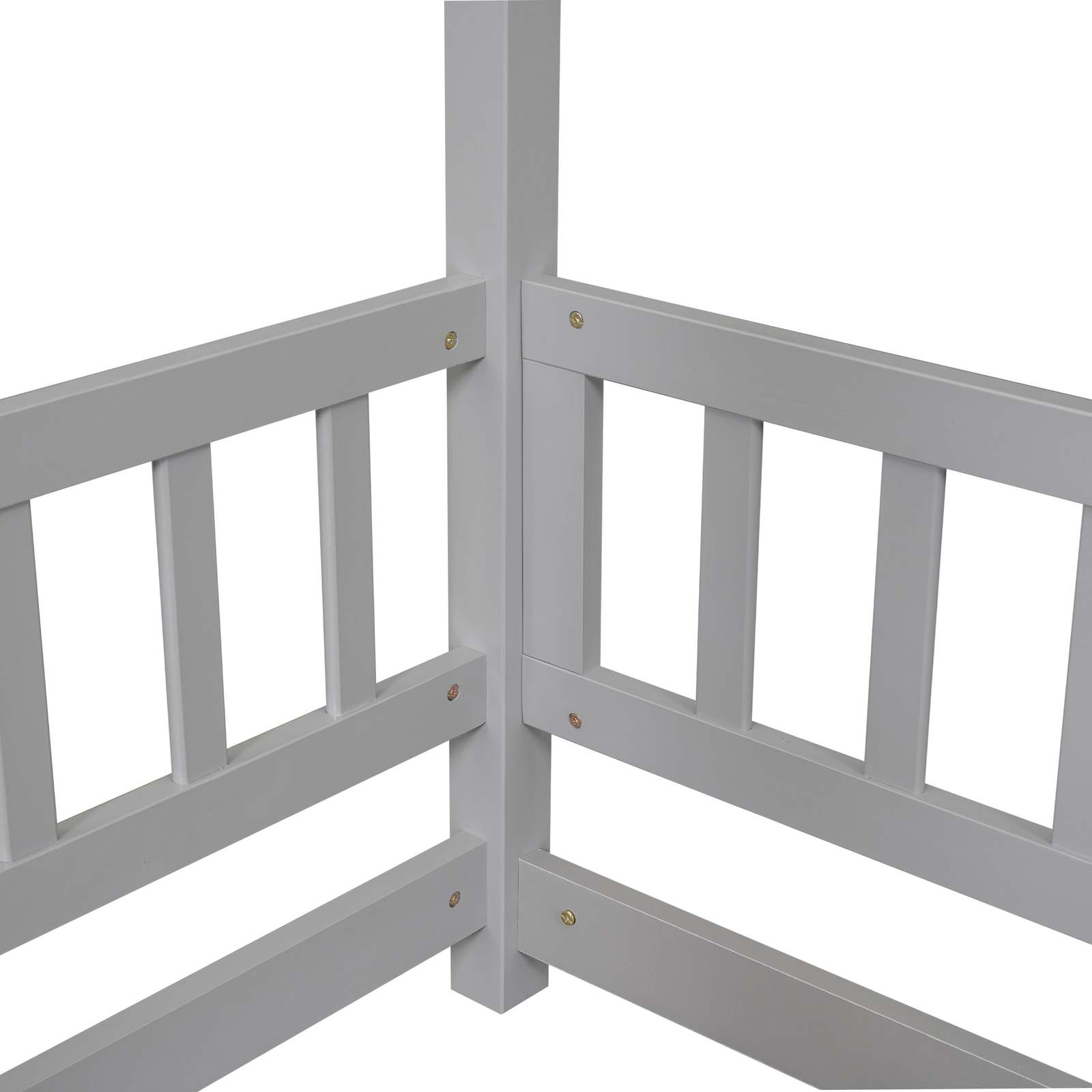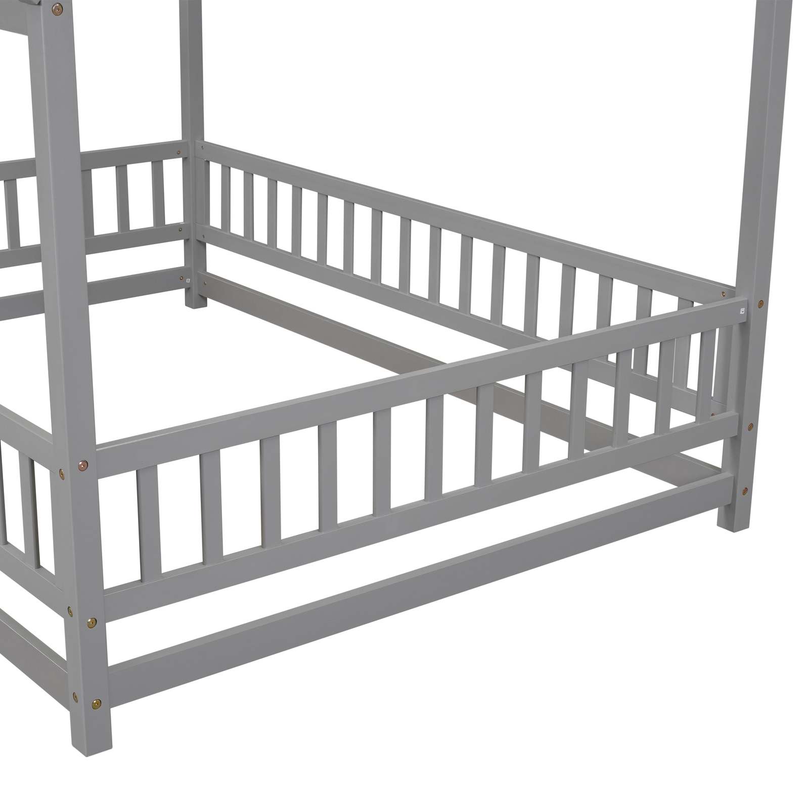 Wooden House Bed Frame with Fence Rails - Grey