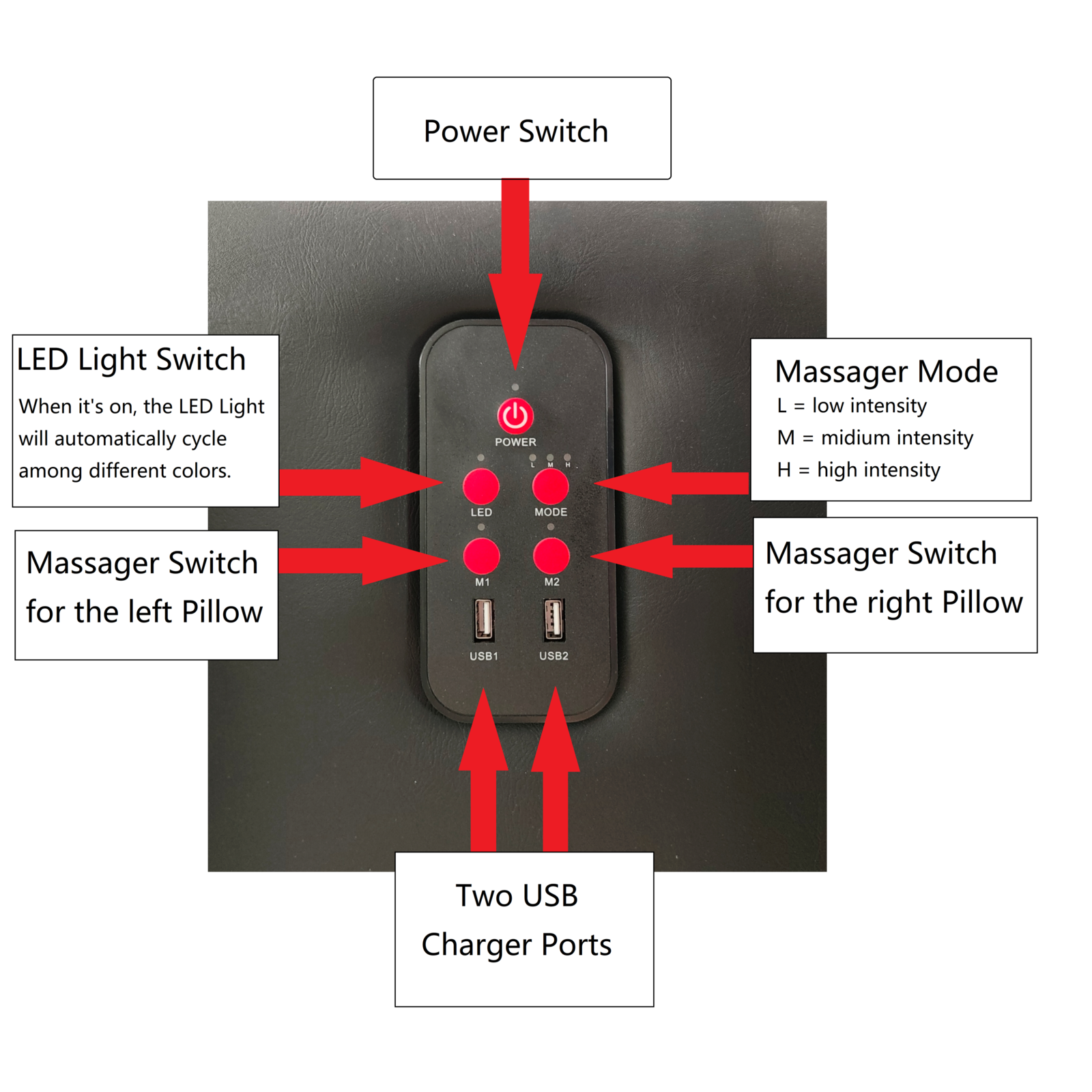 Two sets of vibration motors are built on both sides of the head of the bed, and the intensity of strong, medium and weak three gears can be adjustable pulse,30 minutes regular massage.