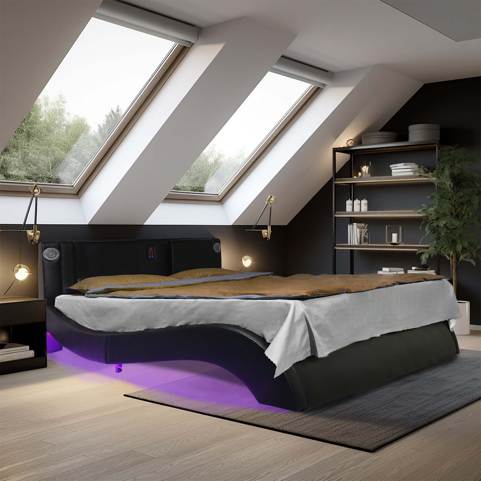 RGB colorful atmosphere lights are installed on both sides of the bed.