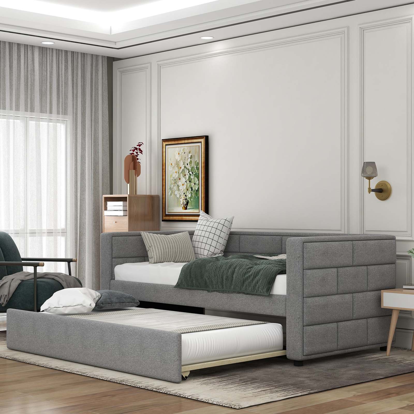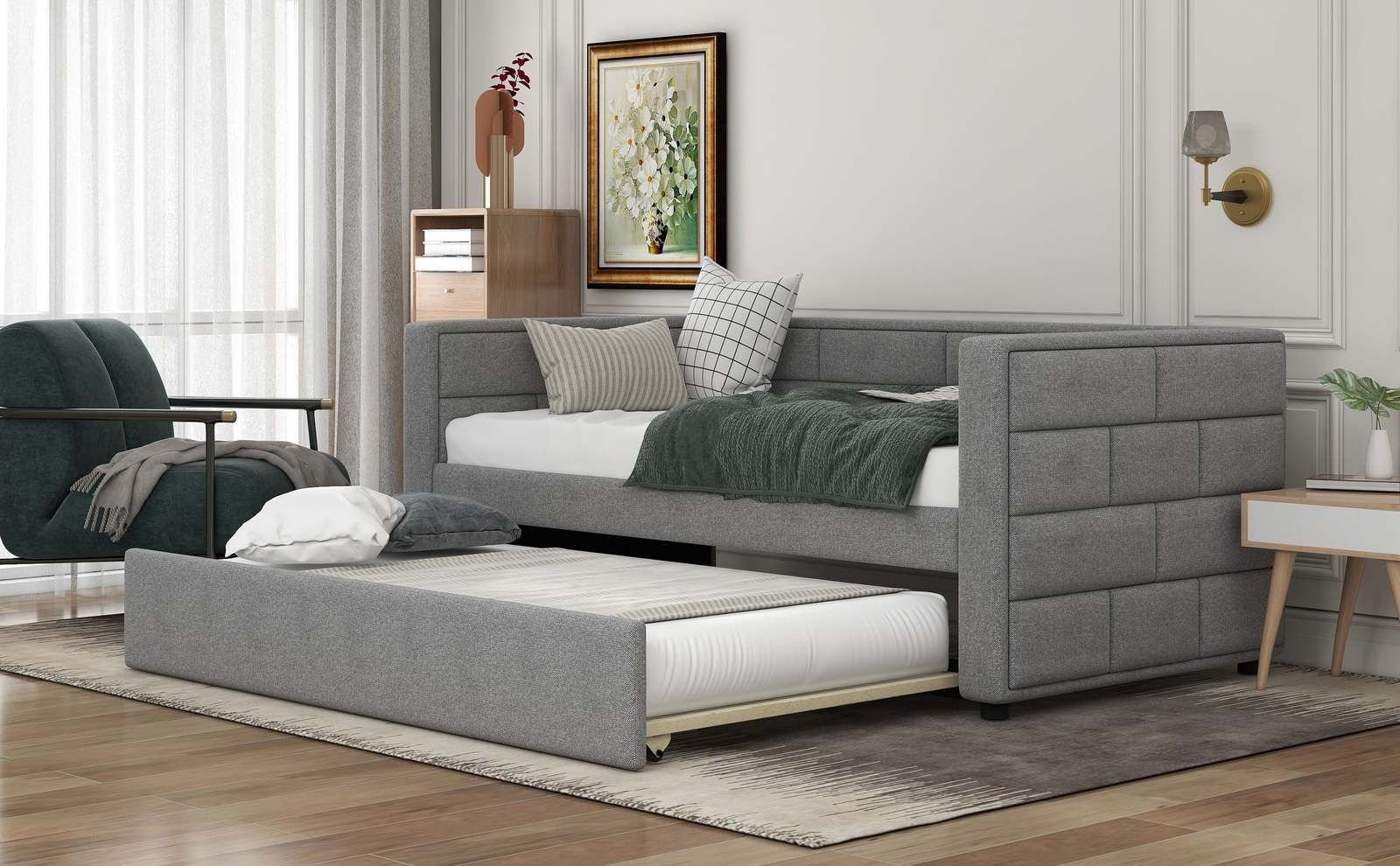 Gray Upholstered Twin Daybed with Trundle and 50 similar items