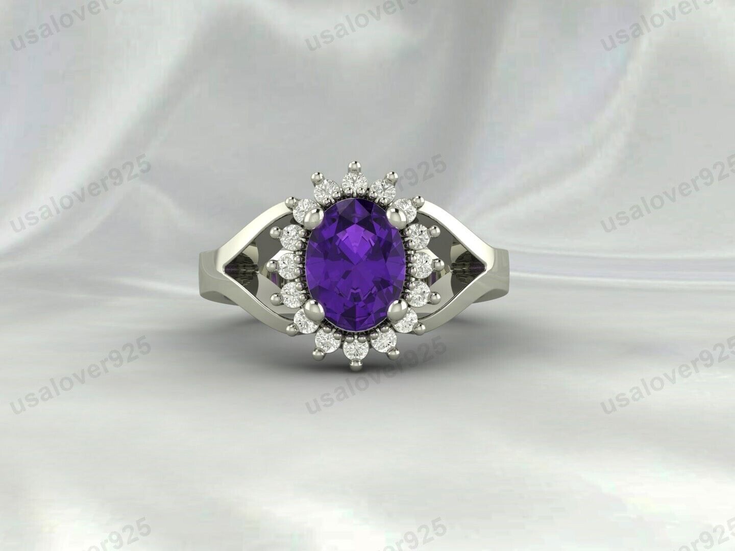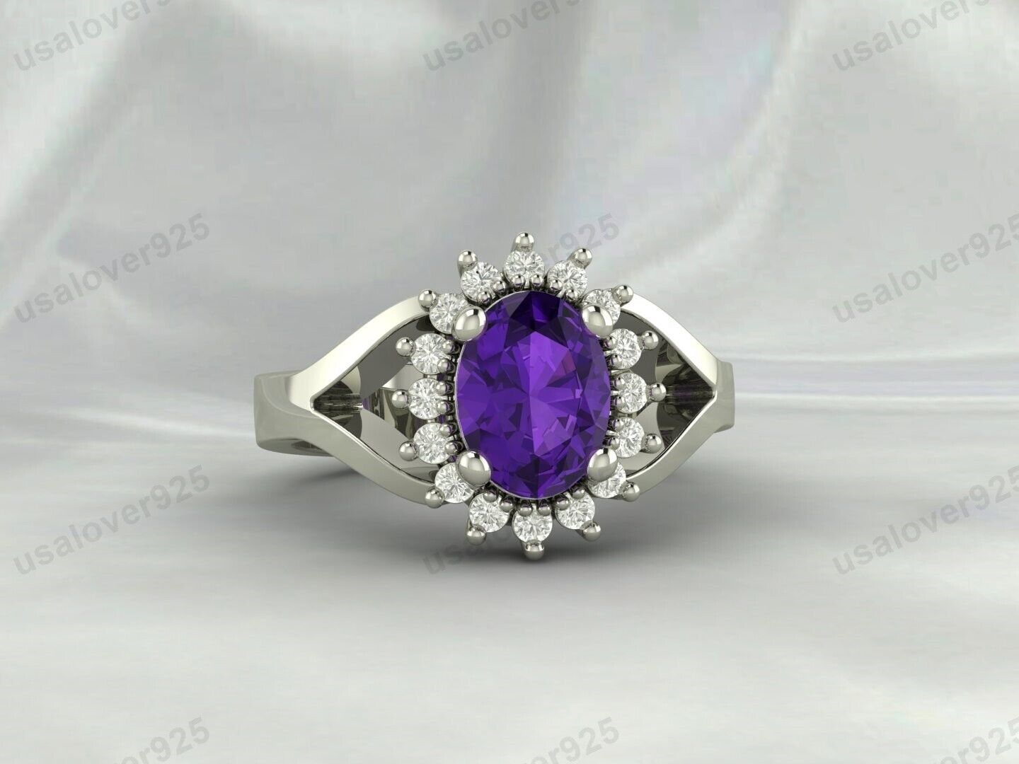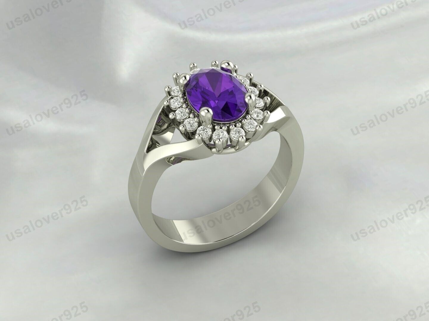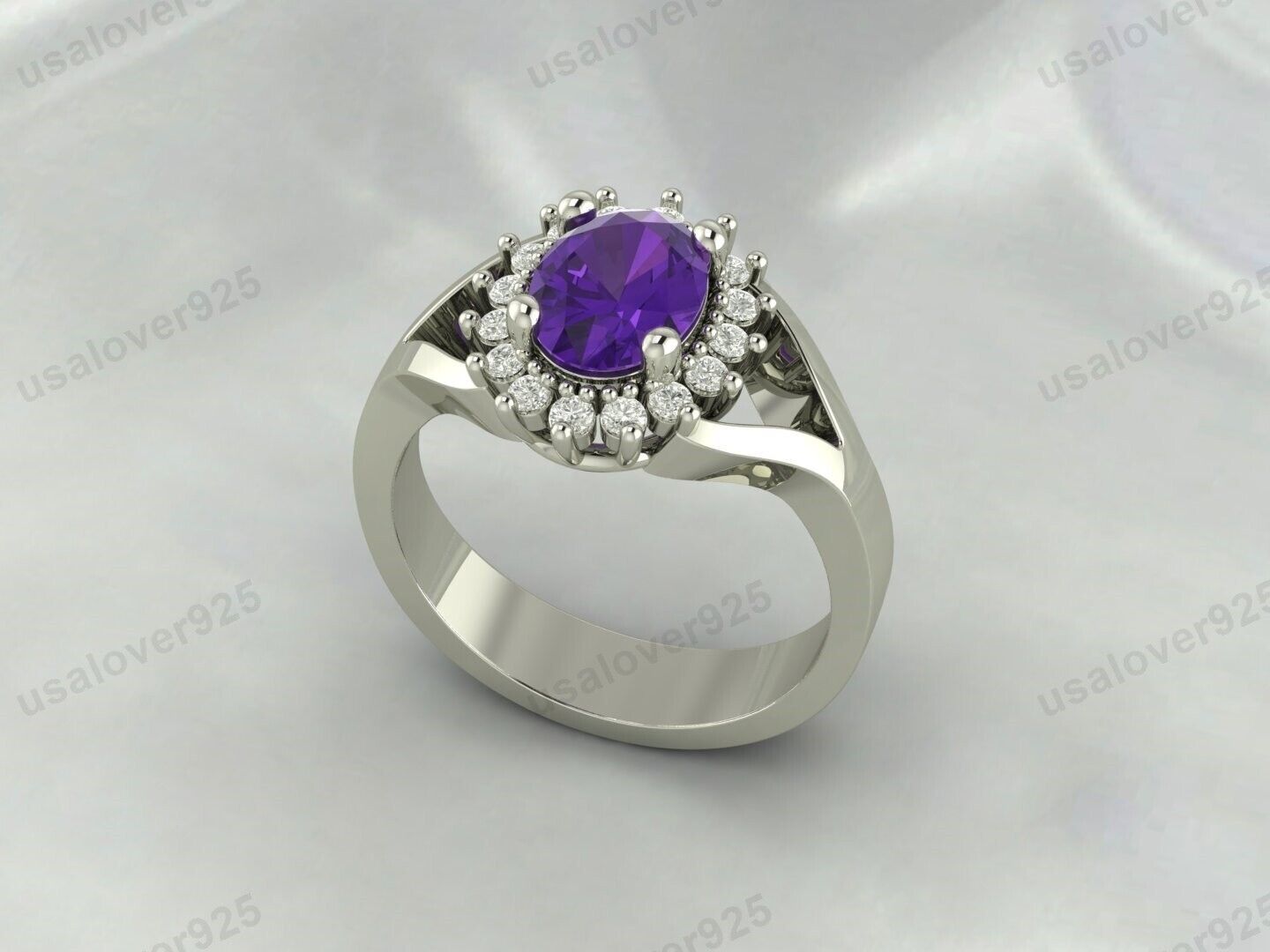 Amethyst Purple Gemstone Women Ring, 925 and 50 similar items